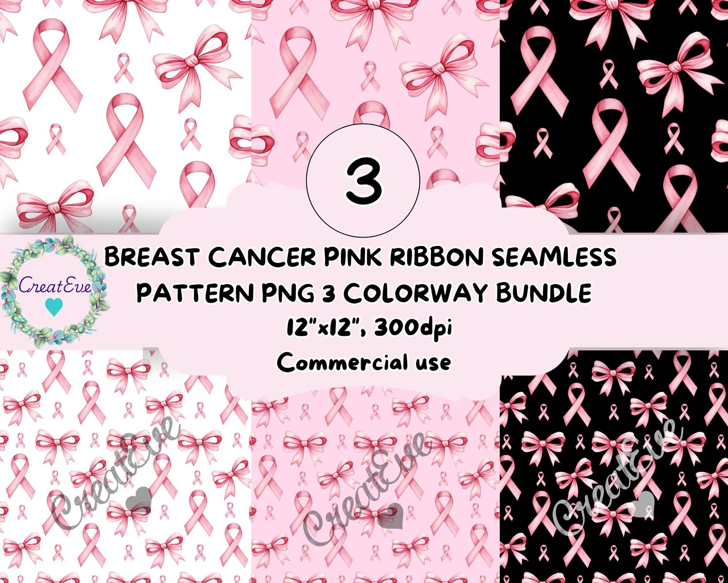 Pink Ribbon Cancer Awareness & Preppy Bows Seamless Pattern Commercial Use 3 Color PNG Bundle