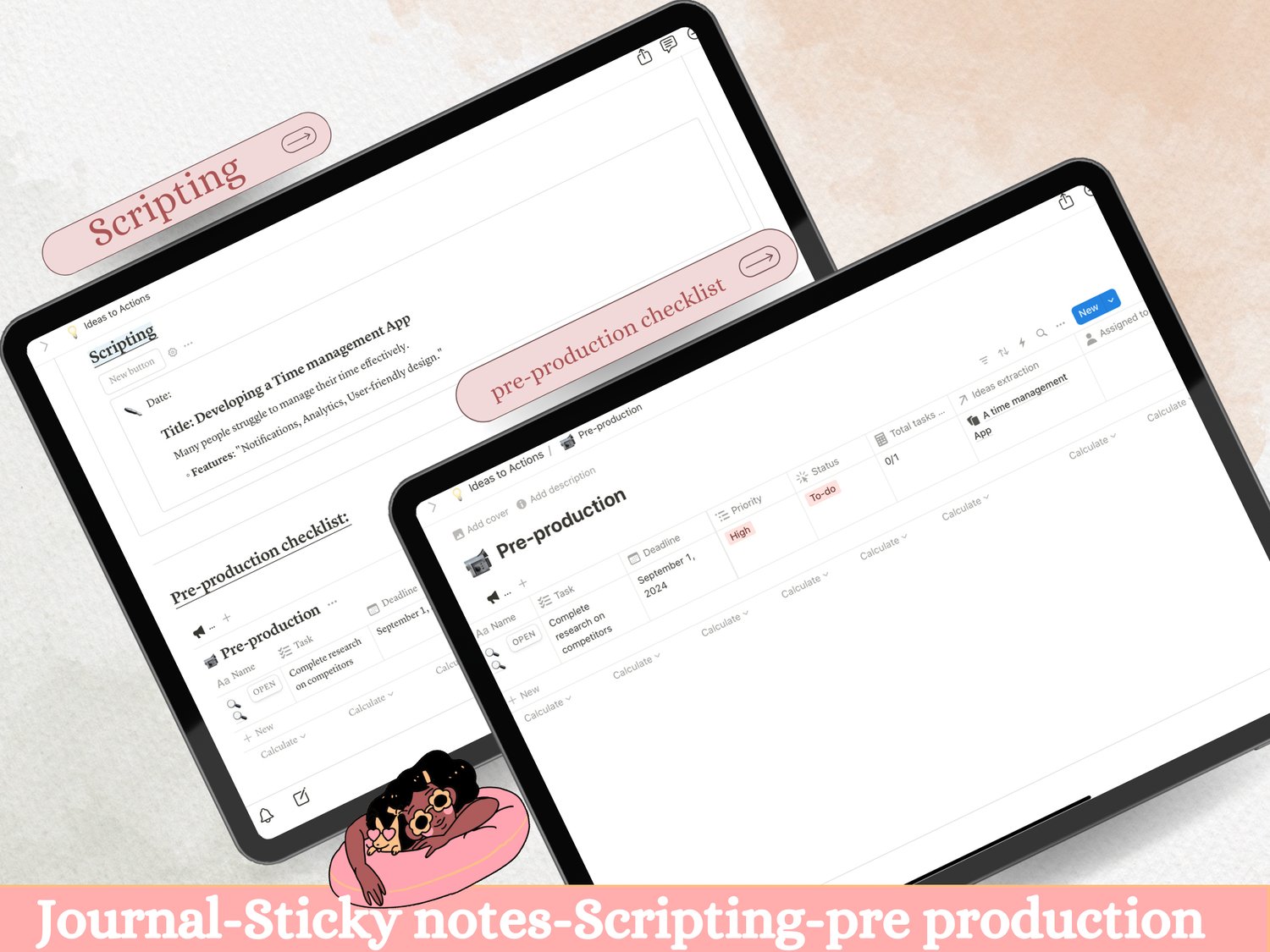 - Focus: Avoid distractions and stay on track with built-in checklists and dedicated scripting sections.