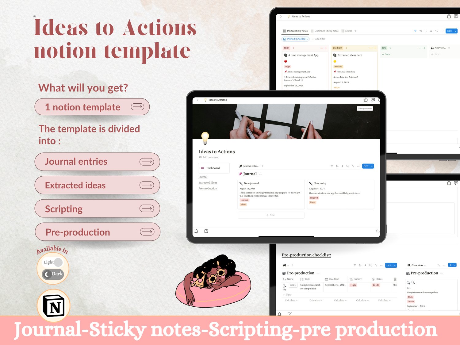 Are you tired of feeling overwhelmed by the sheer volume of ideas buzzing around in your head? Do you struggle to organize your thoughts and follow through on your creative projects? Our "Ideas to Action" Notion Template is designed specifically for you.