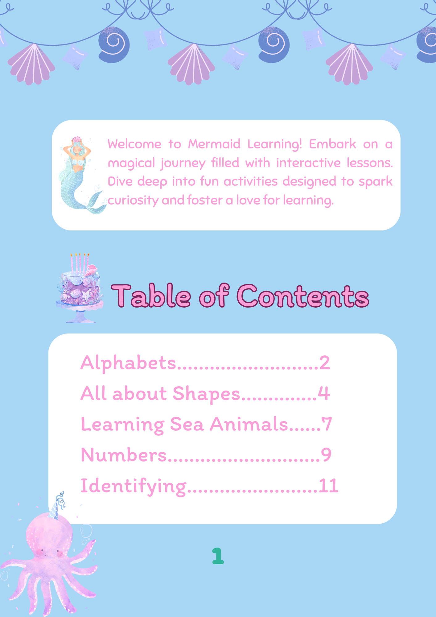Dive into the enchanting world of learning with our **Mermaid-Themed Learning Book for Kids**! Designed for young explorers, this beautifully illustrated book combines fun, engaging activities with educational content. Children will embark on an underwater adventure alongside friendly mermaids, while developing essential skills such as reading, counting, problem-solving, and creativity. Perfect for ages 3-7, this magical journey blends the wonders of the sea with exciting learning opportunities, keeping your little one captivated while making learning fun and effortless. Ideal for both home and classroom use!