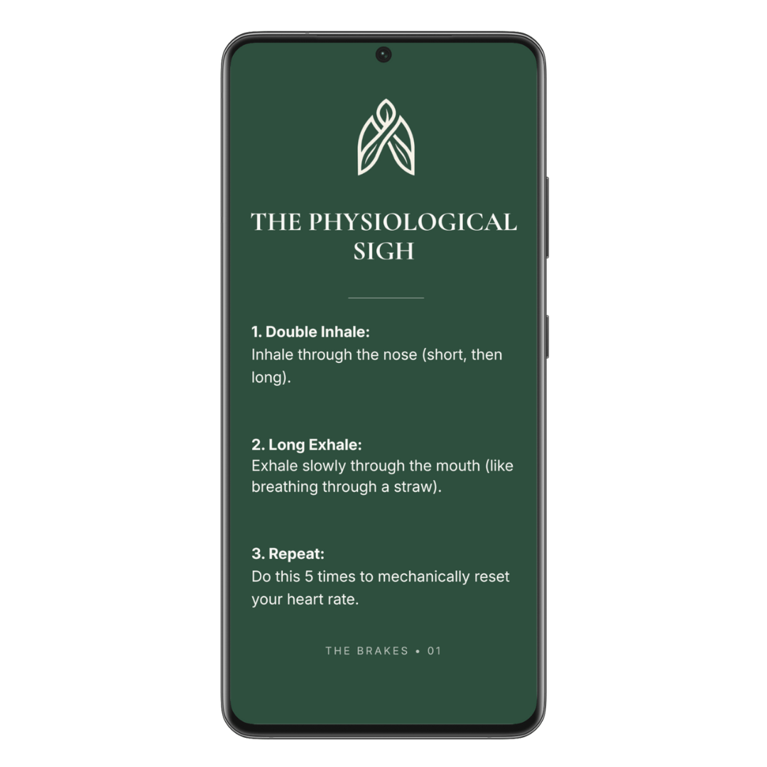 When you are spiraling, you can't read a book or watch a video. You need a trigger. This deck contains 30 high-design somatic cards designed to be used as Phone Wallpapers for instant visual regulation the moment you pick up your device.