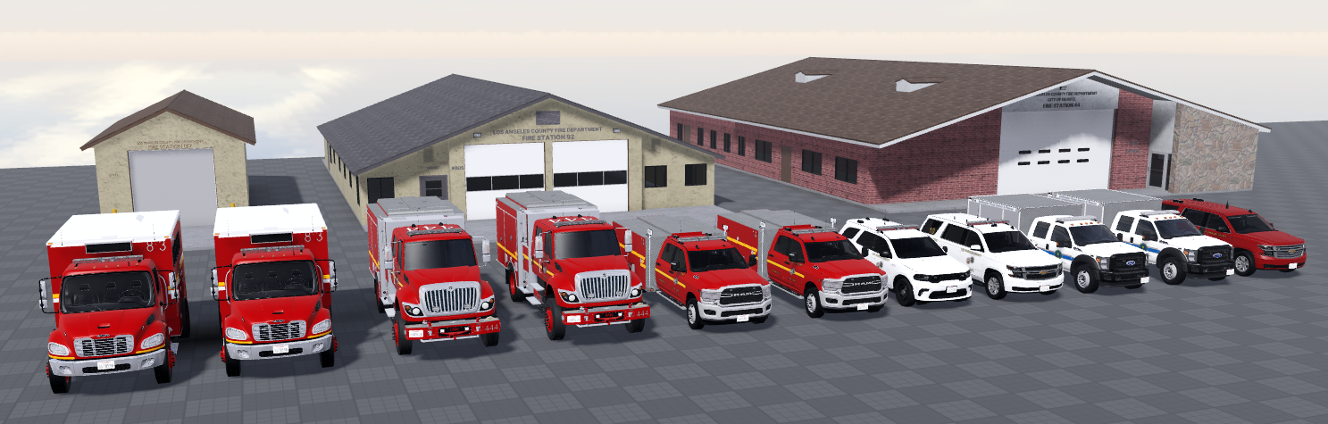 Based off of numerous vehicles from LACoFD. The livery and ELS is 99% accurate to real life for every unit. Each unit includes 3 stages of ELS and 3 stages of directionals. Each vehicle also comes with A-chassis so it isn't static. All vehicles don't come with any sirens so you will have to add your own. Each vehicle comes with two variants, one has opening compartments while the other doesn't. Almost all vehicles except one come with electronics which consist of headlights, blinkers, brakes, and much more! You save $6.15 purchasing this all together! You also get a limited fire station that you can only receive through this pack, Durate LACoFD station 44.