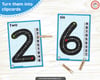You can also display them in your classroom and use them as interactive counting posters to give your children a visual reference for how each number is written. Print them at different sizes for different activities: you could print them at full-size for use as posters, or print two per sheet to create clip cards or counting cards.