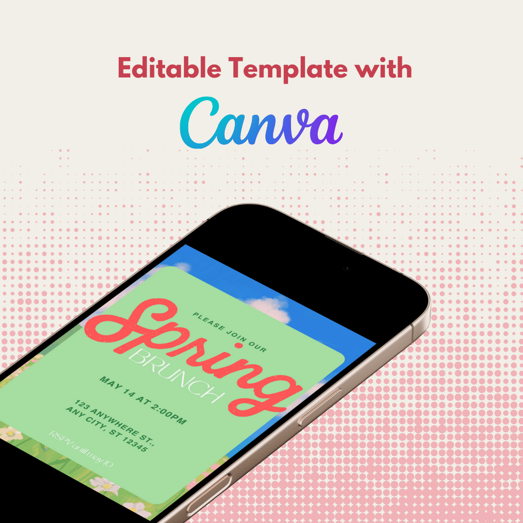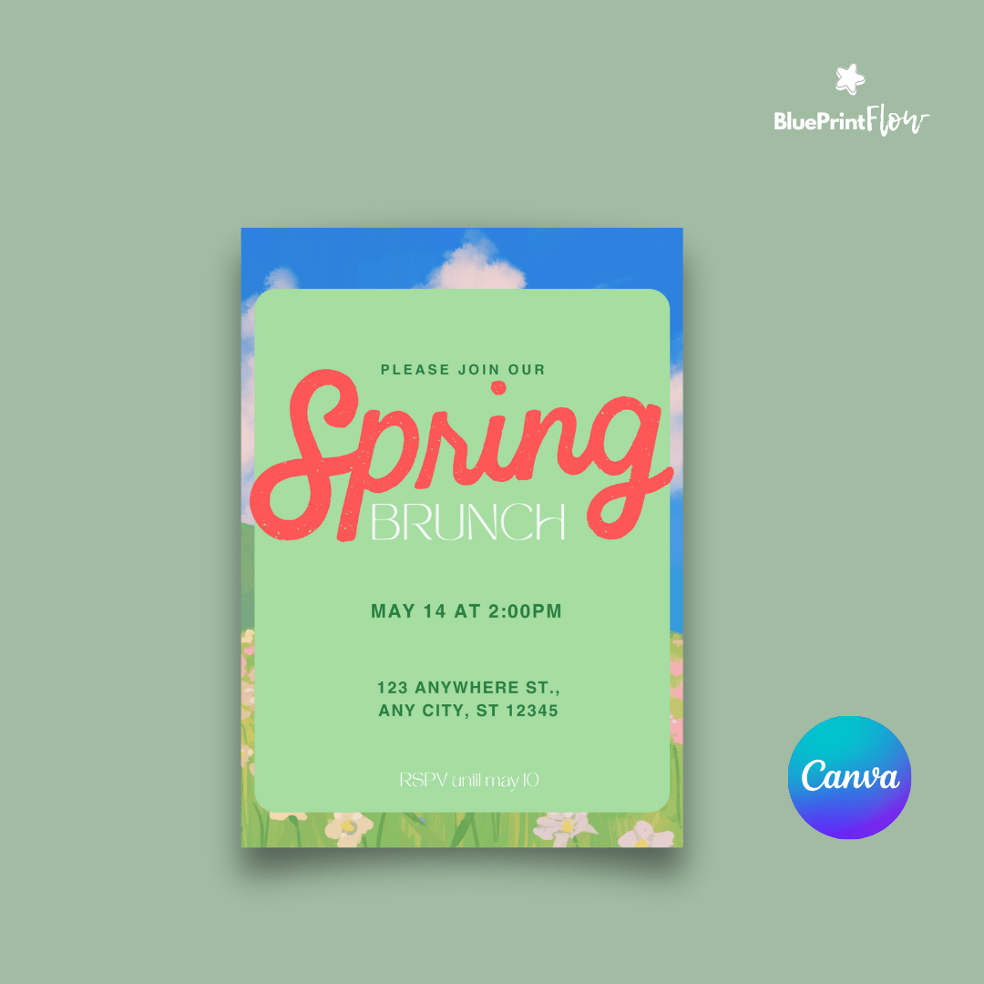 Elevate your brunch invitation with this colorful and cute Canva template featuring a beautifully painted background inspired by spring and nature.