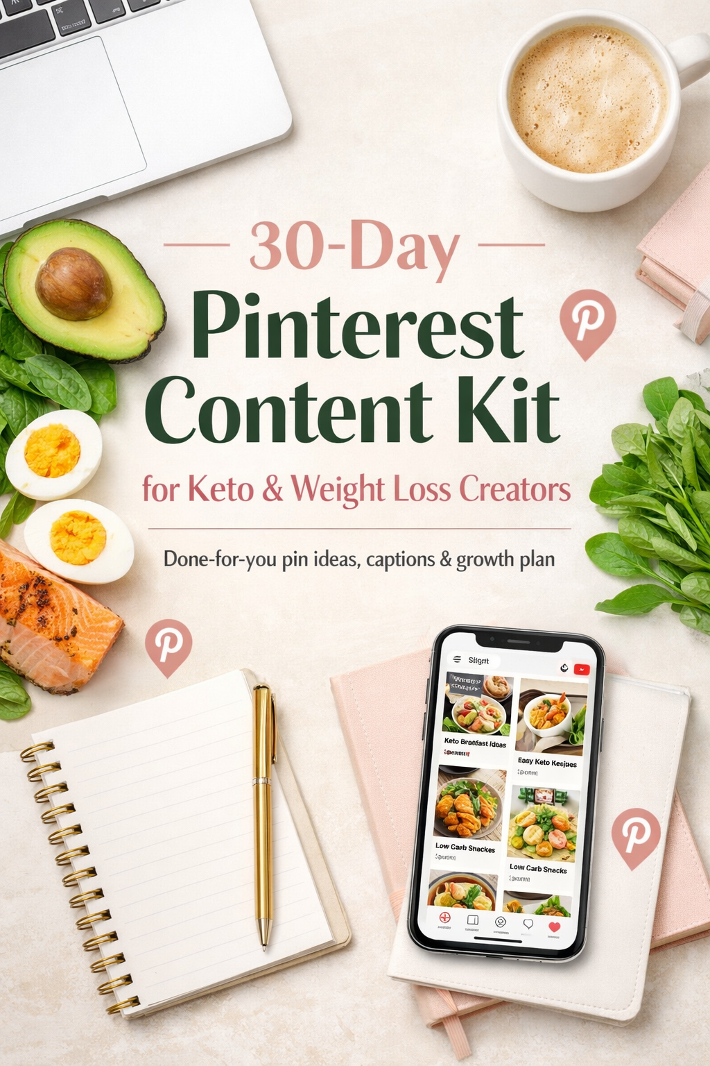 Introducing the 30-Day Pinterest Content Kit for Keto & Weight Loss Creators β your all-in-one shortcut to consistent posting, viral-ready designs, and more clicks to your products, blog, or Payhip store πΈπ