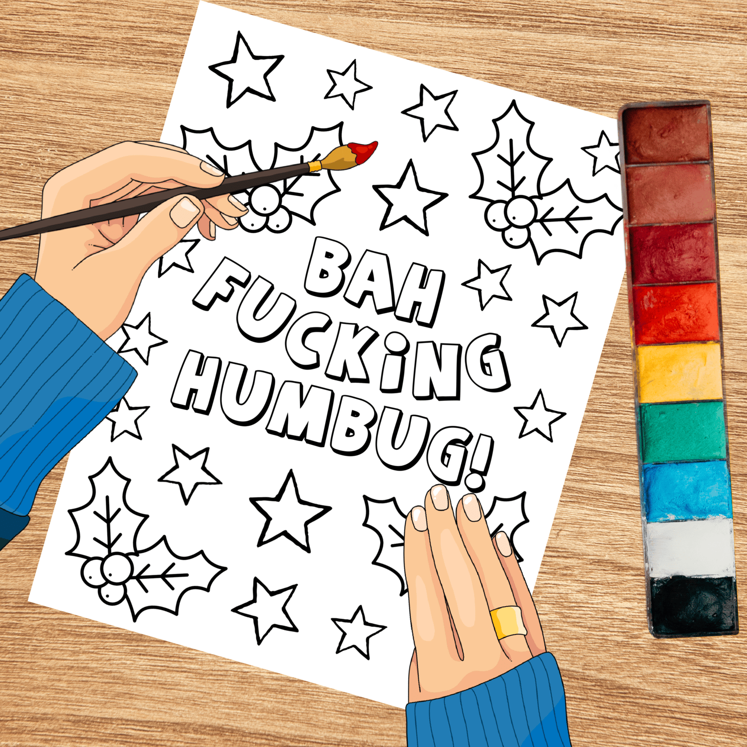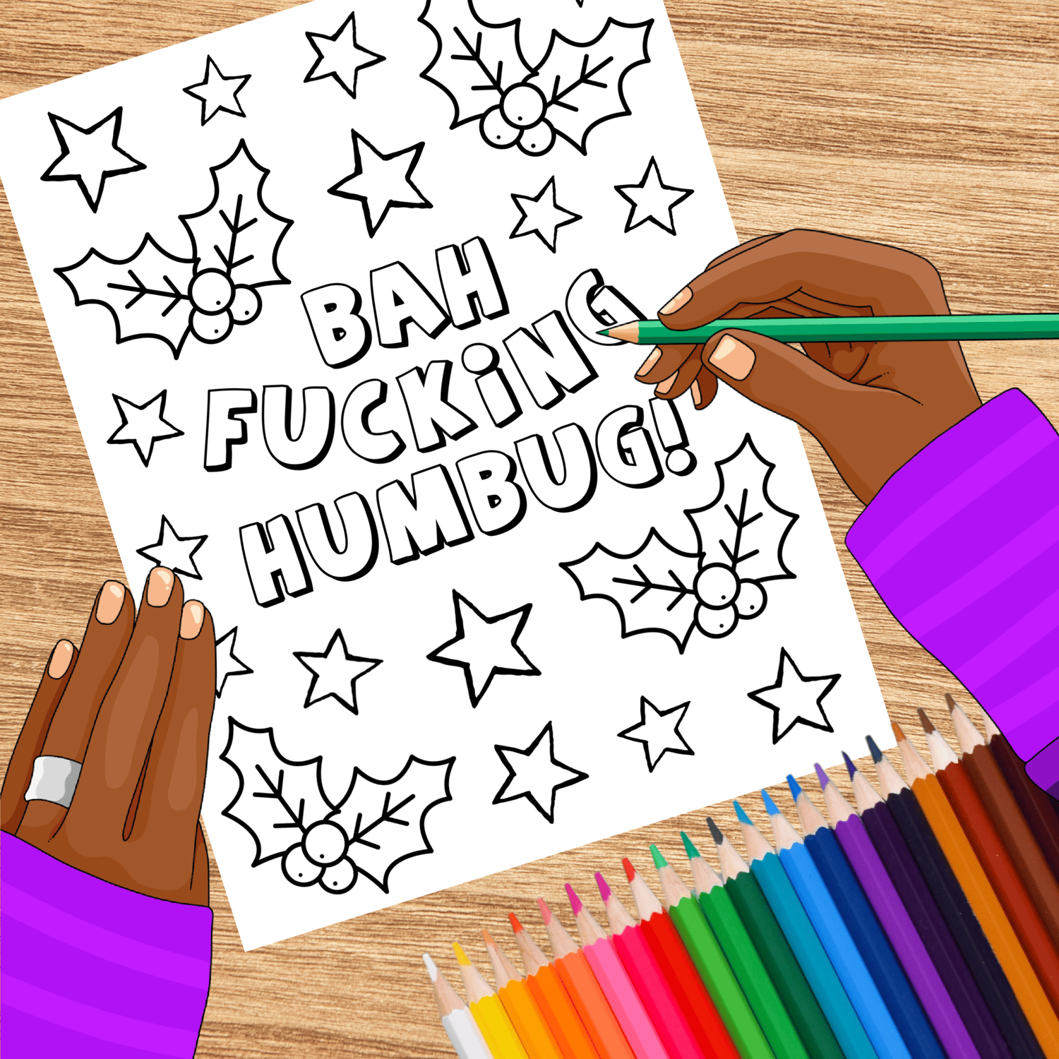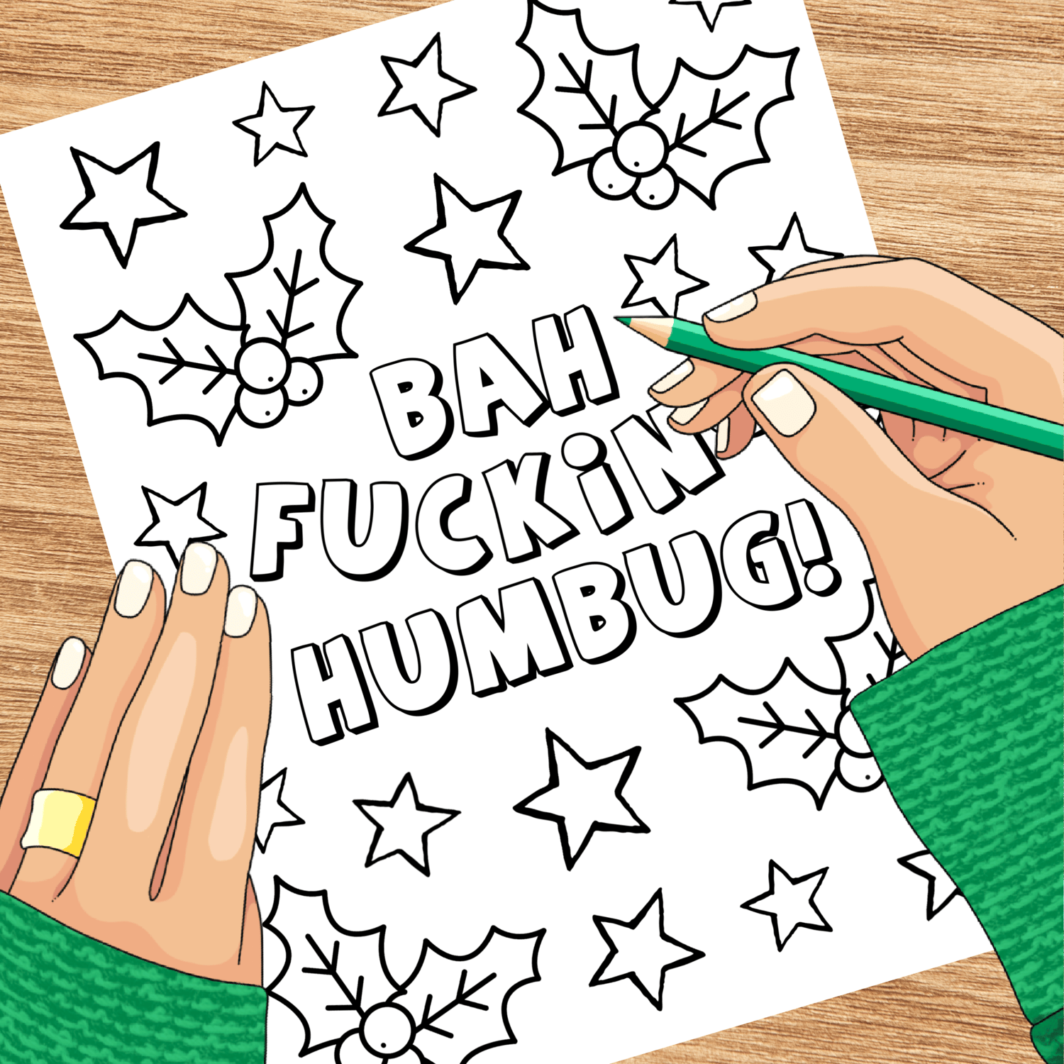 Bah Fucking Humbug Coloring Page Printable 8.5x11 Instant Download PDF & PNG File Naughty Sweary Christmas Crafts