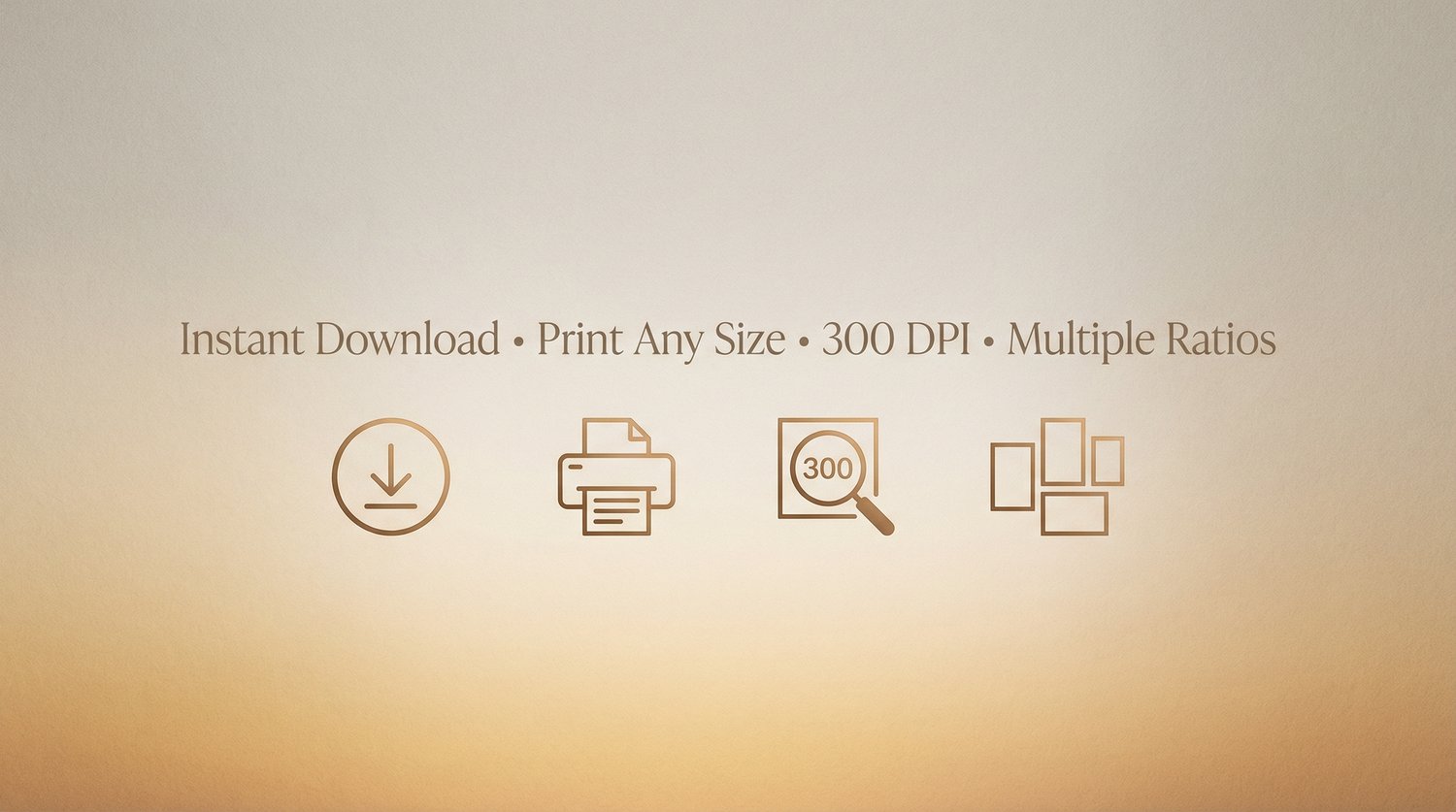 High-resolution 300 DPI JPG files in multiple print ratios: