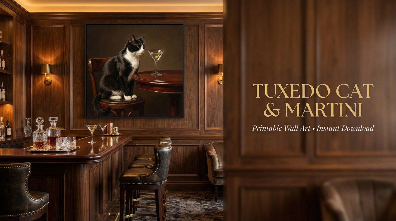 Designed to feel like a timeless still life you’d find in a private club or old-world cocktail lounge — but available as an instant digital download.