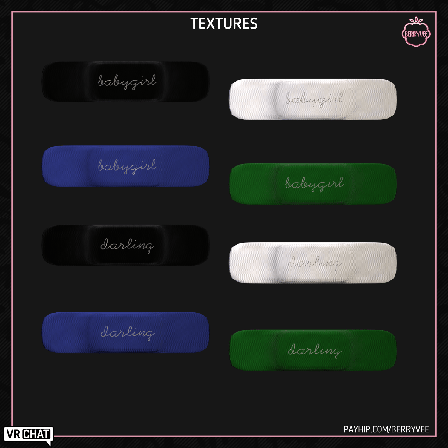 - ✅ All Assets and Avatars sold by berryvee must be properly credited and require hyperlinking to either my Gumroad, Payhip or Discord. [e.g. " Via Hair by berryvee " or " Via Hair by berryvee " ]