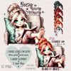 Girl on sofa, including darker skin option, plus 2 separate text options: “It’s a beautiful day to leave me alone” and “busy doing nothing”. 3 base files with blonde hair; green, blue and brown eyes plus 5 hair clipart and 2 text files. 10 PNGs.