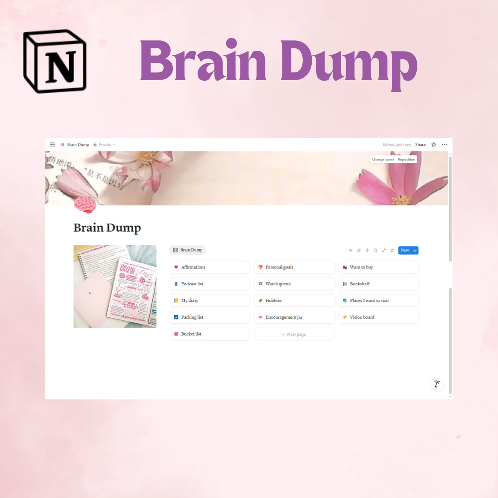 With this Brain Dump, you can capture all your thoughts, dreams, and plans in one place: