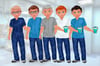 Male nurse, healthcare worker clipart. With coffee. Choice of uniform, hair, eye colour. 4 glasses. Sublimation PNGs. 21 PNGs