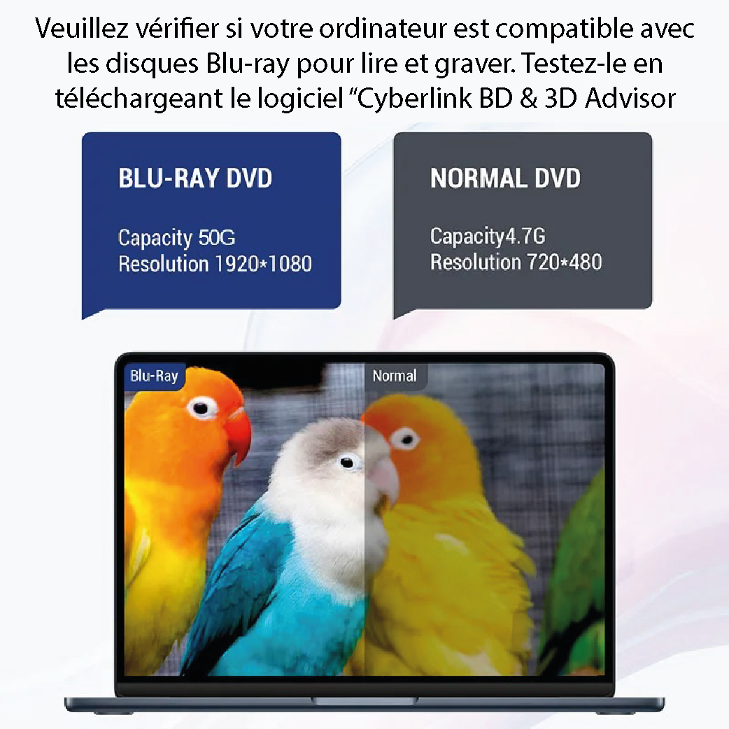 - Lecture Blu‑ray jusqu’à 50 Go