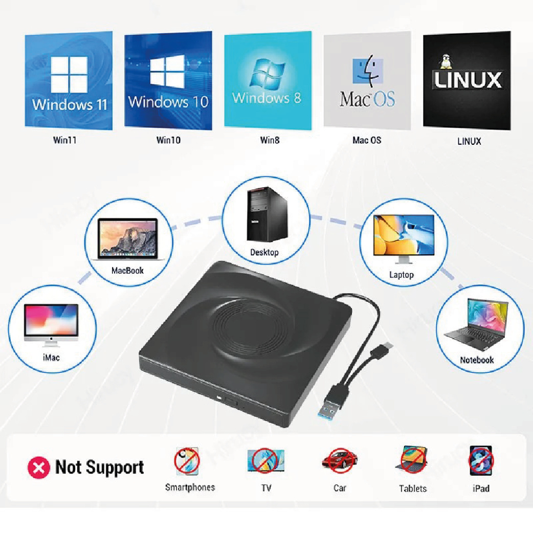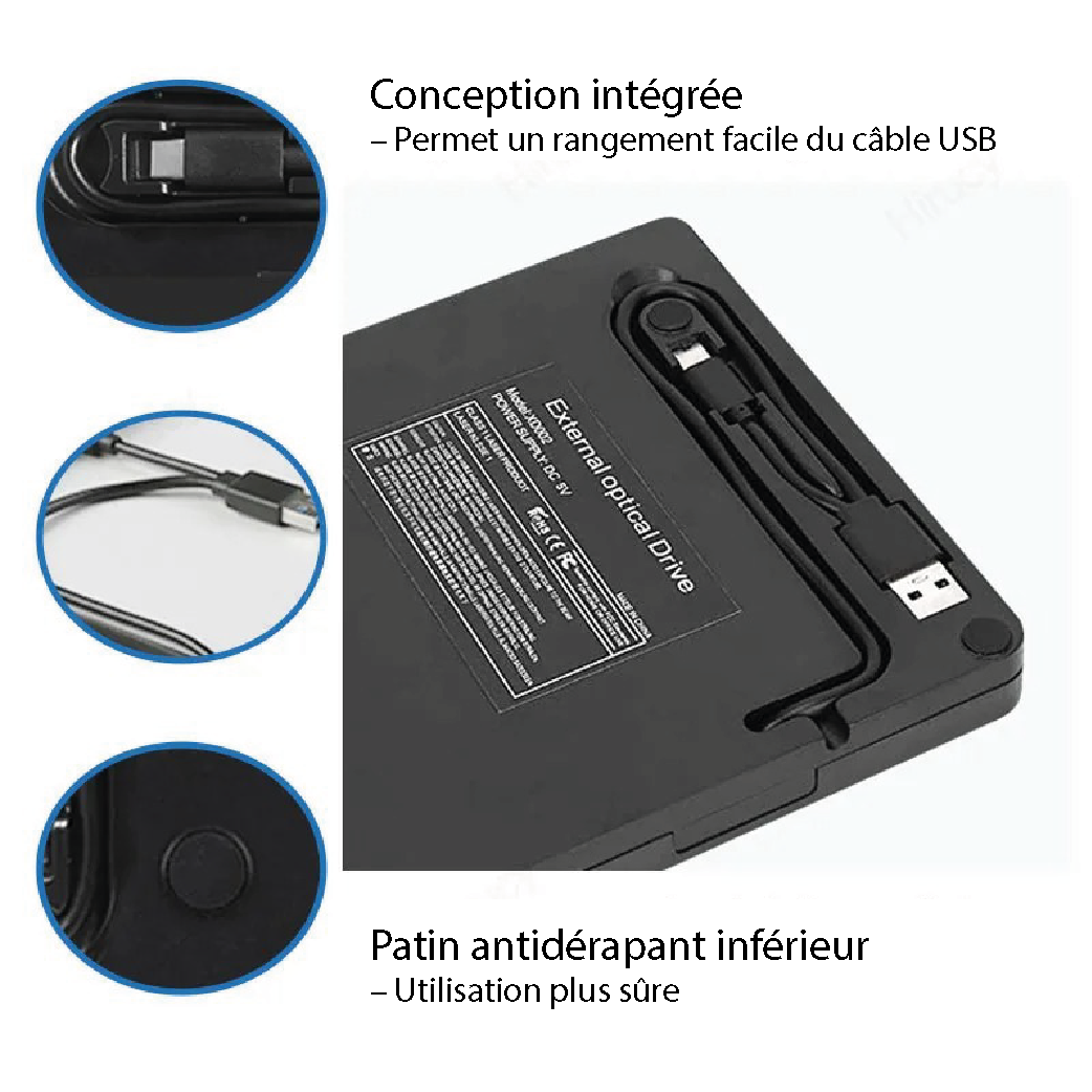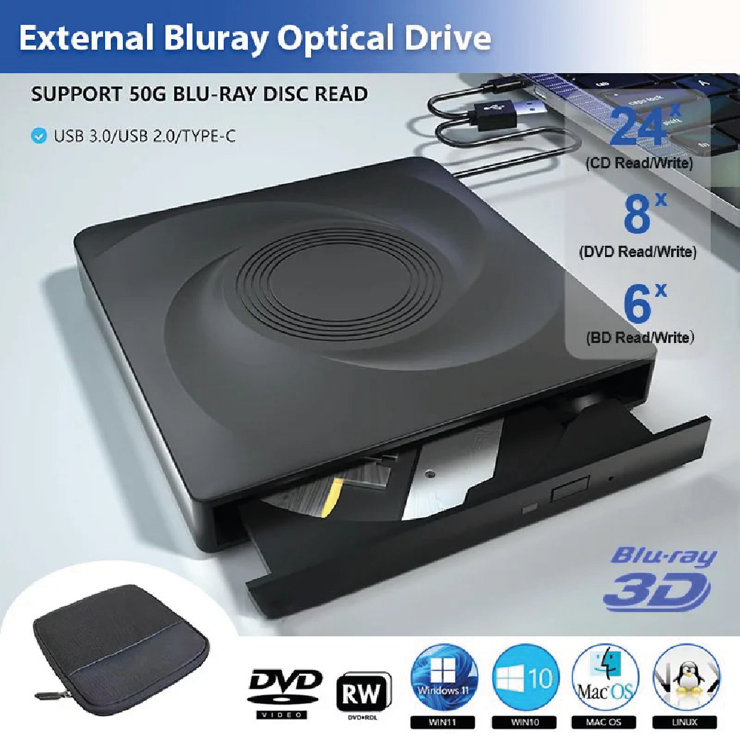 Lecteur Graveur Blu‑ray 3D Externe USB 3.0/Type‑C – Lecteur CD/DVD BD – Housse