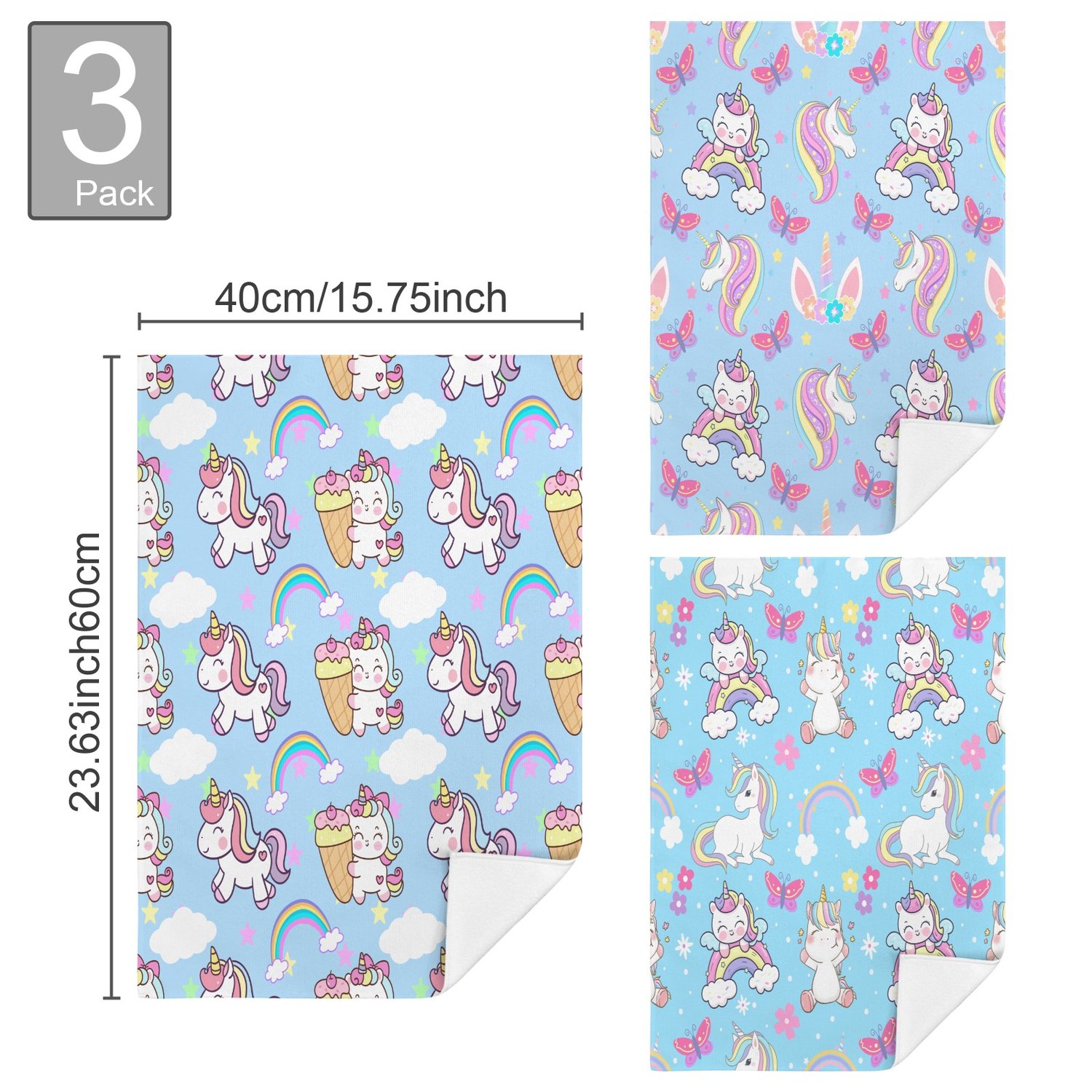 Magical Unicorn Light Blue Multi Towel Set Towel 40x60cm (Set of 3)