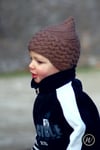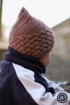 Some sideways cables, a little bit of bias, a hint of ear-flaps and a touch of pixie = super cute!