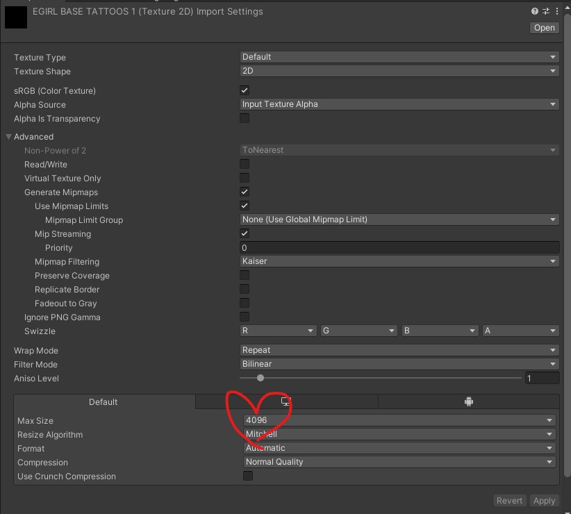- Adjust max size in texture import settings to 4096 for clarity and best details