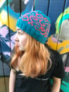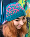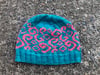 A medium weight hat that features swirling colorwork, inspired by the joy of exploring the rocky edges of the water in the Pacific Northwest.