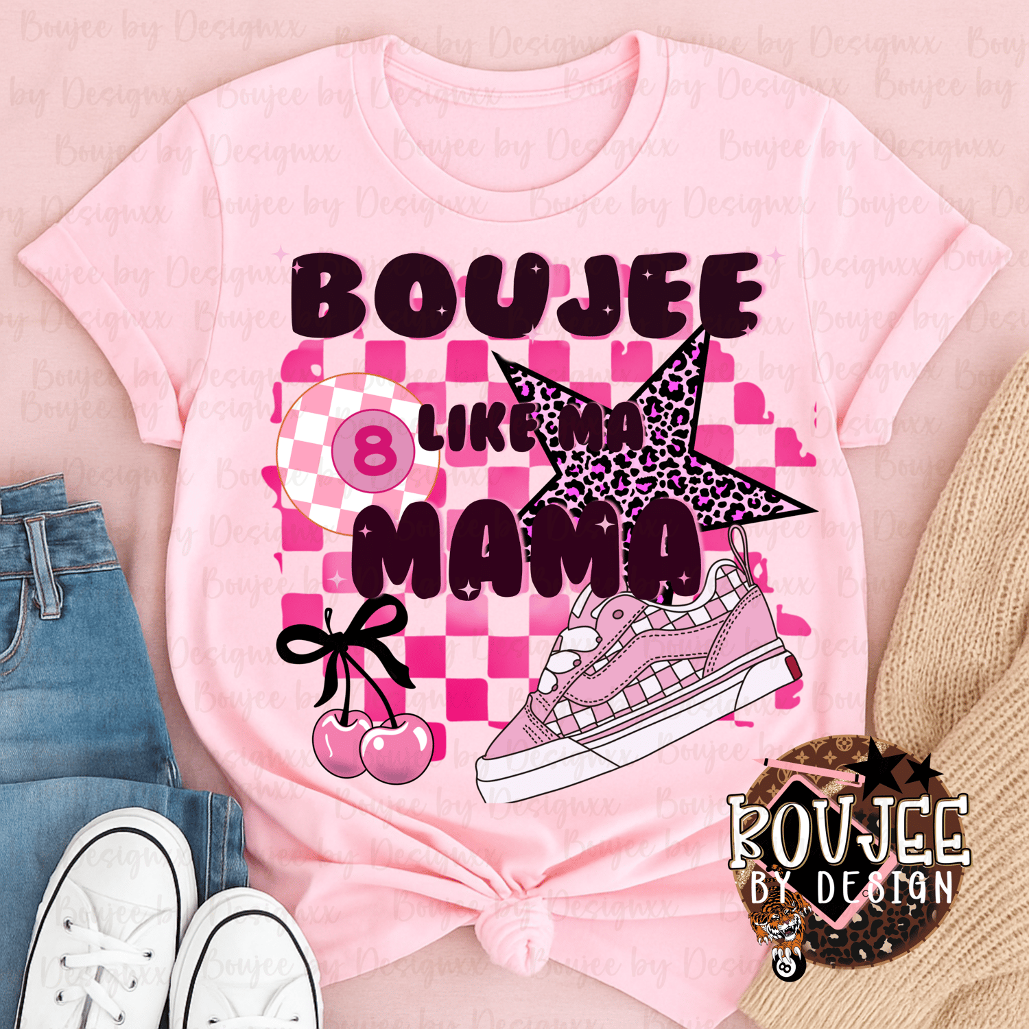 Boujee Like Ma Mama PNG | Retro Pink Girl Graphic | Cute Cherry Sneaker Sublimation Design