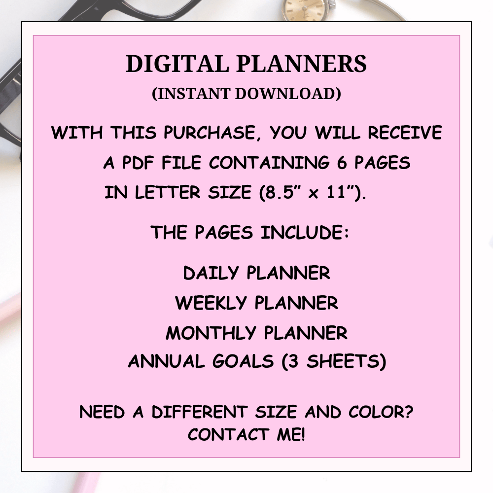 - A PDF file containing the complete planner bundle with:
