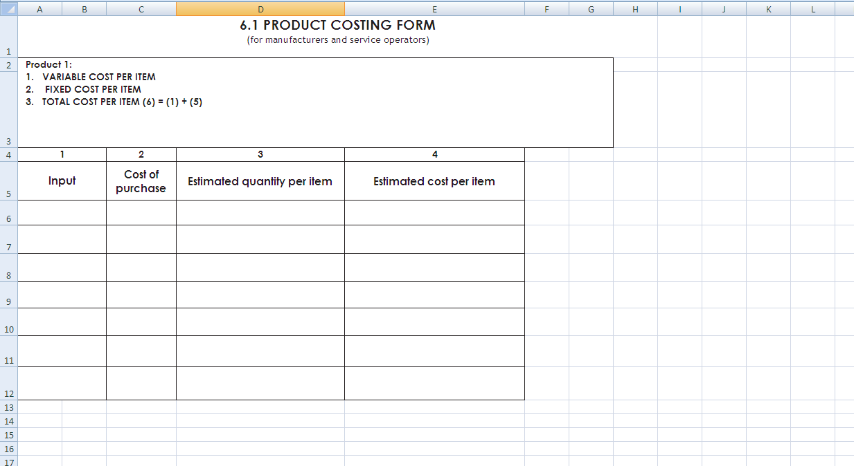 Product Costing Template for Manufacturers and Service industry (Editable Form)