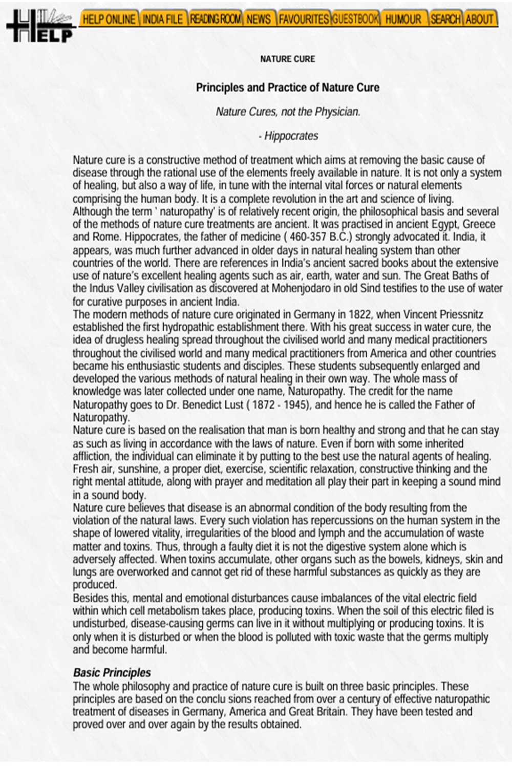 disease through the rational use of the elements freely available in nature.