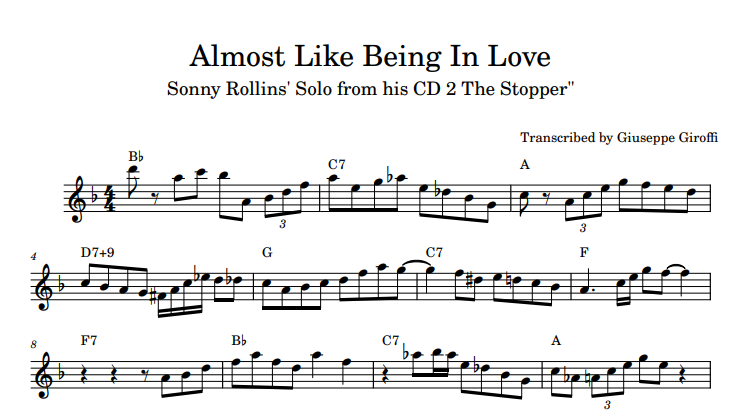 Almost Like Being In Love - Sonny Rollins Solo Transcription (Bb) Tenor Sax
