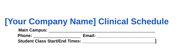 Use this template, which is available in word document format, to explain to your students how their clinical or hands-on practice days will go.