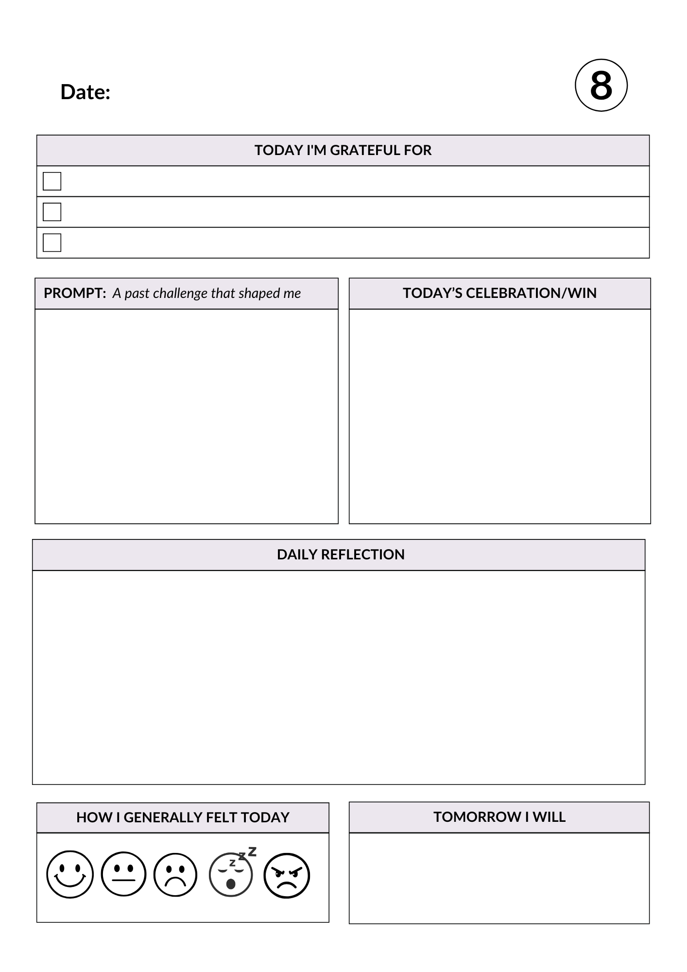 This 30-Day Gratitude Journal is a beautifully designed printable workbook that helps you build a consistent gratitude practice and support your overall mindset and wellbeing. With intention-setting pages, daily space to list three things you’re grateful for, and thoughtful reflection prompts, this journal guides you toward more clarity, calm, and emotional resilience. Perfect for anyone wanting to deepen their self-care routine or start a simple mindfulness habit, it also includes a 21-day habit tracker to help your new gratitude practice stick.