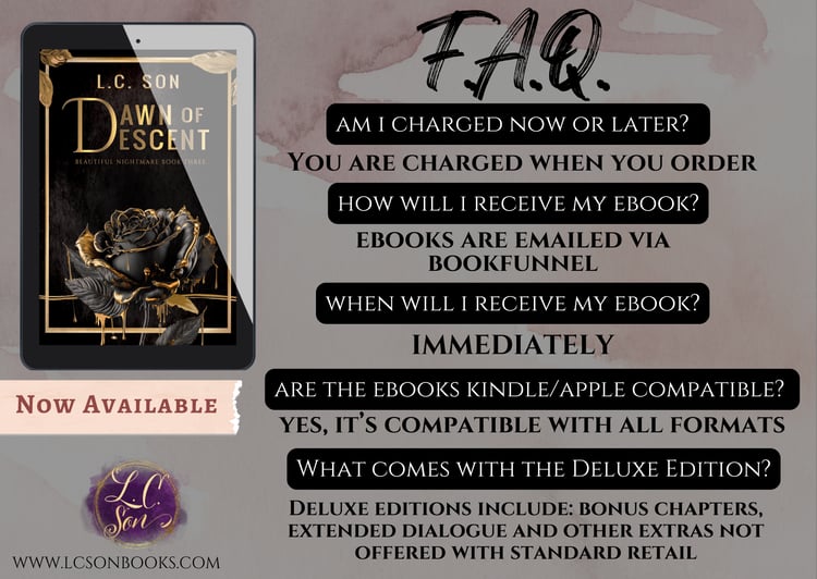 Dawn of Descent: Beautiful Nightmare Book Three is the final book in the trilogy. To avoid spoilers and maintain consistency, readers are encouraged to read the first two books before reading Dawn of Descent.