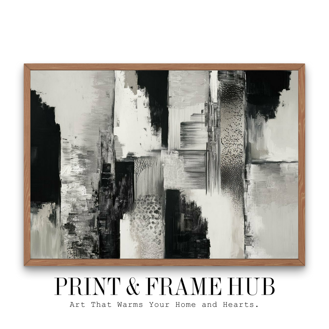 Minimalist painting featuring dynamic black and white brush strokes. Its timeless design and striking contrast make it the perfect addition to any wall, adding sophistication and modern flair to your space.