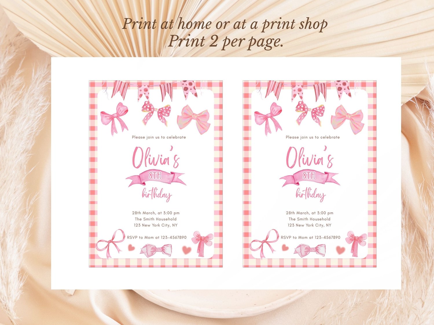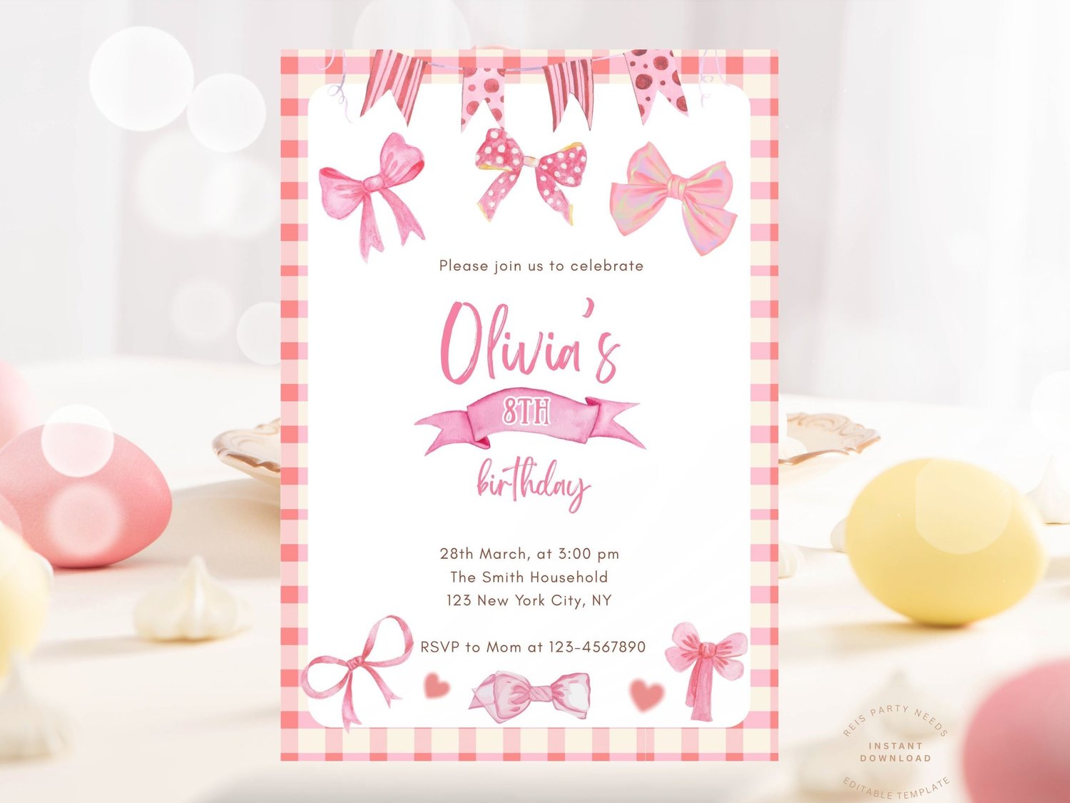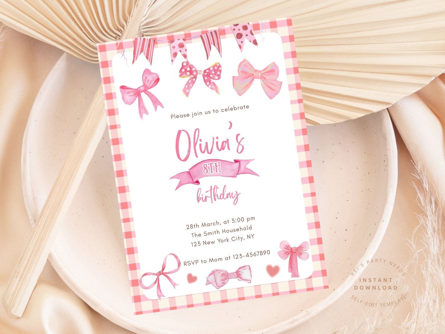 Pink Bow Theme Birthday Invite Pink Bow Birthday Bow Invite Coquette Bow Birthday Girl Birthday Invite Coquette Birthday Invitation Cute
