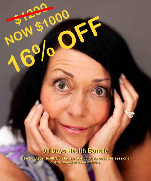 The 90 Days Health Bundle is made up of six one-hour sessions over a period of three months. Save 16% compared to single sessions.