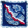 There are six blocks, each made in the four different colour ways giving a total of 24 blocks. Blocks are about 23cm (depending on tension) and finished size is about 140cm x 95cm.
