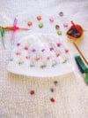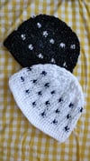 The Sugar Cubes hat from Variegated! issue#6, Fruity Fiesta! The tiny bits of fruit embedded in the textured, sugary coating of the hat body, ooohh it just reminds us of some yummy fruit cake ๐ AND looks great in all the tester color combos to boot ๐