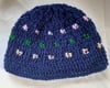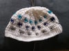 Pattern calls for JoAnn's BigTwist Value yarn in white and scraps of colors for the contrast. Hook used is 5mm and the hat fits adult size medium/large. Sizingย can be easily adjusted.
