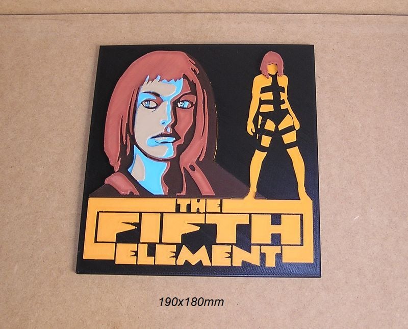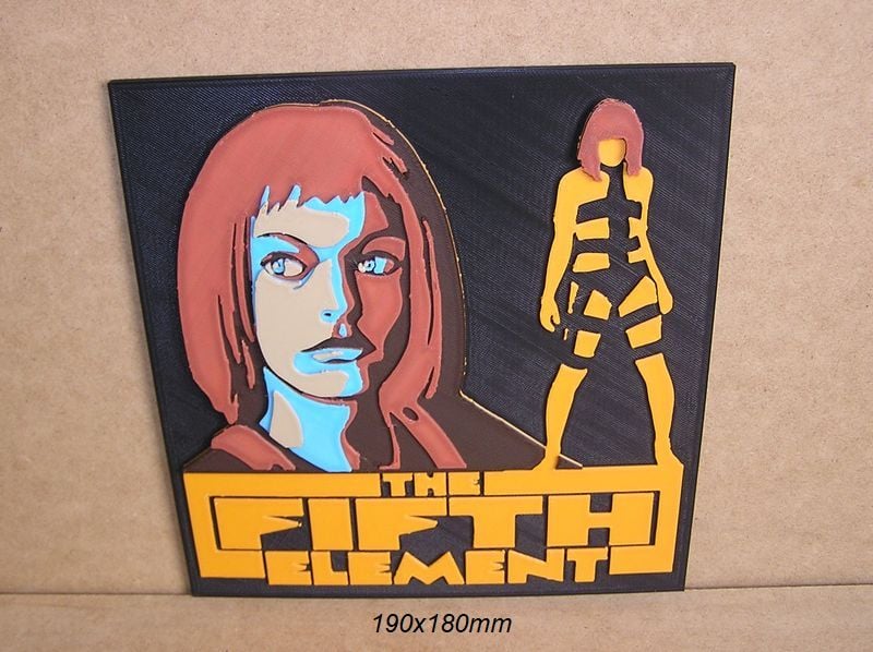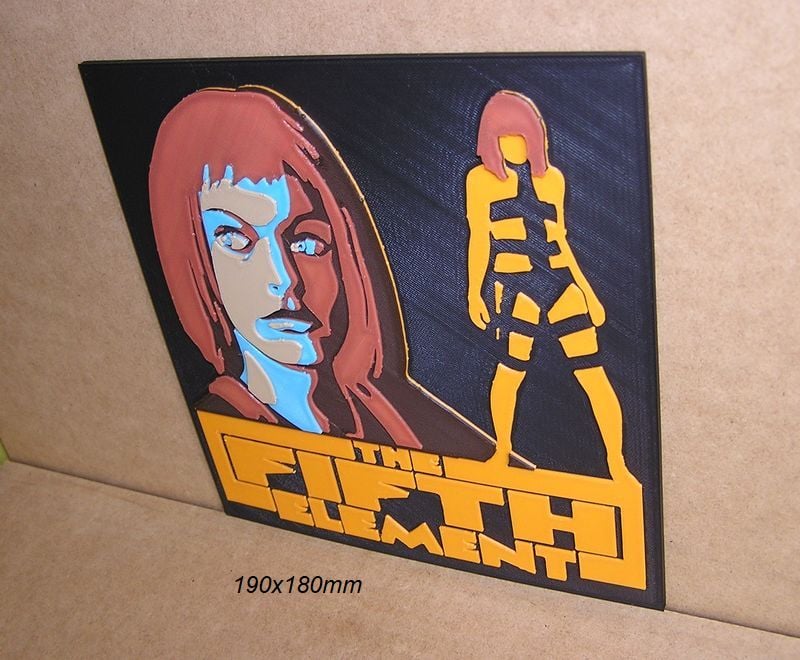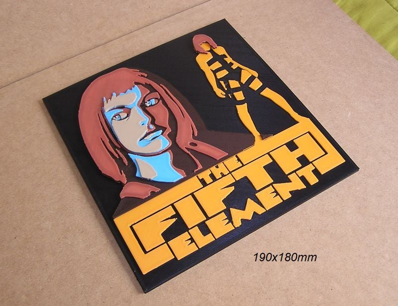 The Fifth Element Poster, Sign, Logo of the movie, these STL and Gcode files have been created to be printed in various colors with any FDM type printer. The color changes have been made with the Elegoo Neptune 3 Pro printer, but they can be printed on any printer.