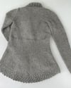This elegant coat has a fitted waist, shaped "tail" at the back with a blackberry stitch edge and a chunky 2x2 rib collar. The tail is worked first, using short row technique to create the curved shape, the body is then worked up from the waist. Sleeves are worked seperately and sewn in. The knitting pattern has a schematic with measurements, front and back photos and fully written out pattern descriptions. You will receive a four page PDF file.