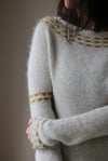 This top-down, seamlessly constructed sweater is knit with Tweed Silk Cloud by Shibui Knits, the strands held double to create a cozy fabric with incredible drape.
