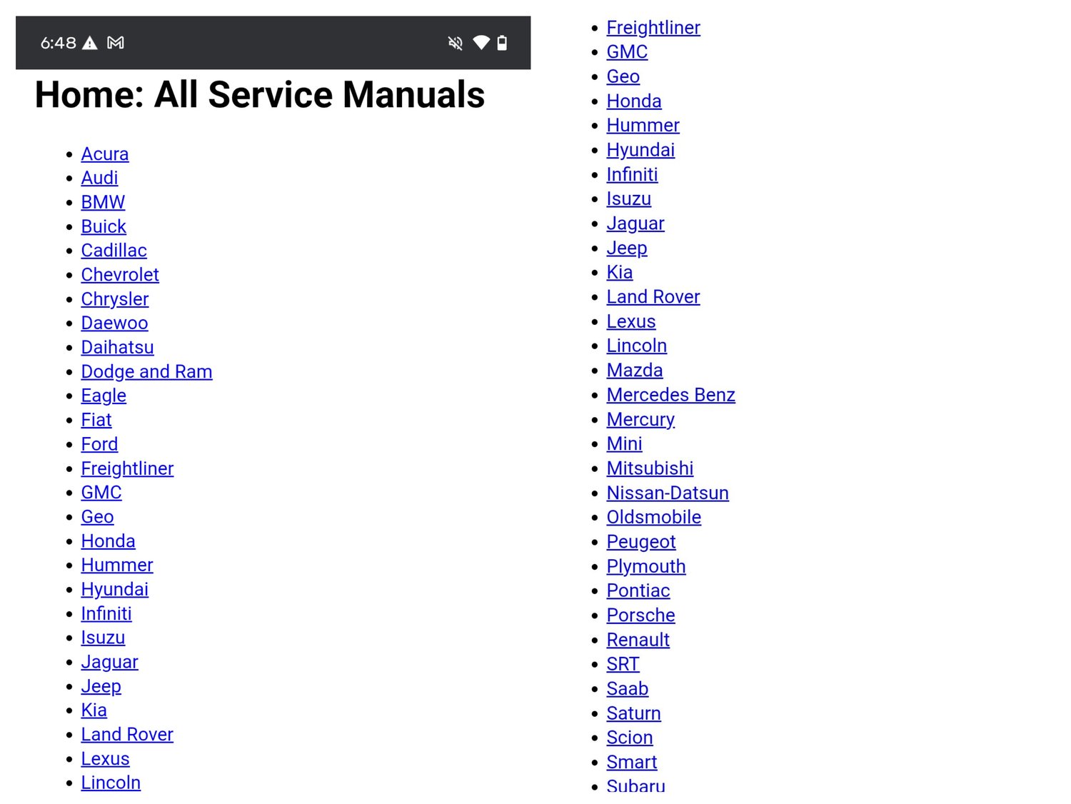 All makes and models for vehicles years 1982-2013 in one extensive repair manual. It covers EVERYthing. Parts and labor, Repair and service, DTC's Diagrams, Specifications, Electrical, Fluids, starting and charging, powertrain.....you name it, it covers it. And it walks you through every single repair. It's pretty simple to use. It's pretty impressive really.
