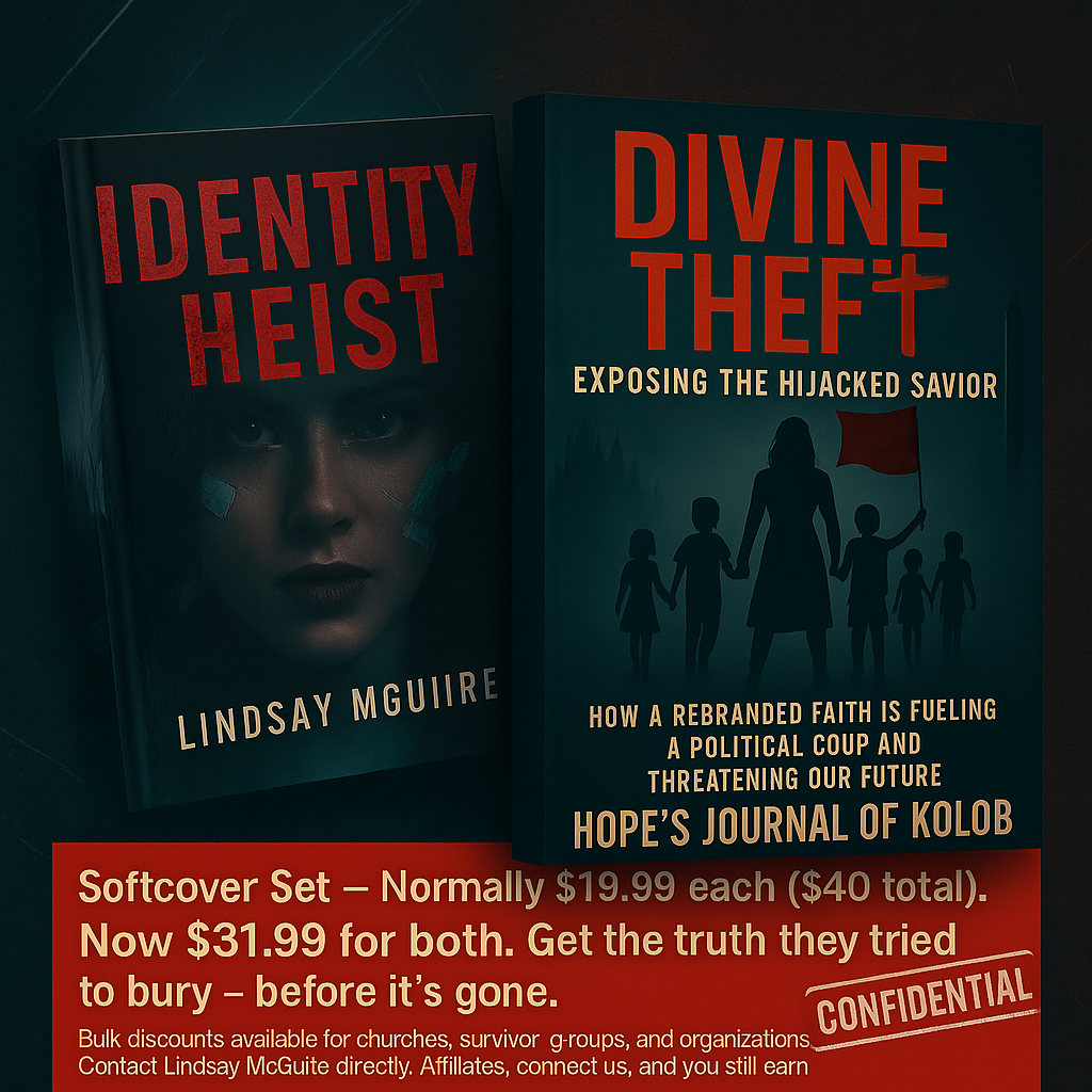 The Identity Heist Series blends true crime, memoir, and psychological thriller to expose how religious corruption, family court failures, and coercive control destroy families and silence survivors. From Divine Theft’s exposé of Mormon power and betrayal to Identity Heist’s true-crime account of systemic abuse and legal cover-ups, these books are not entertainment—they are evidence.