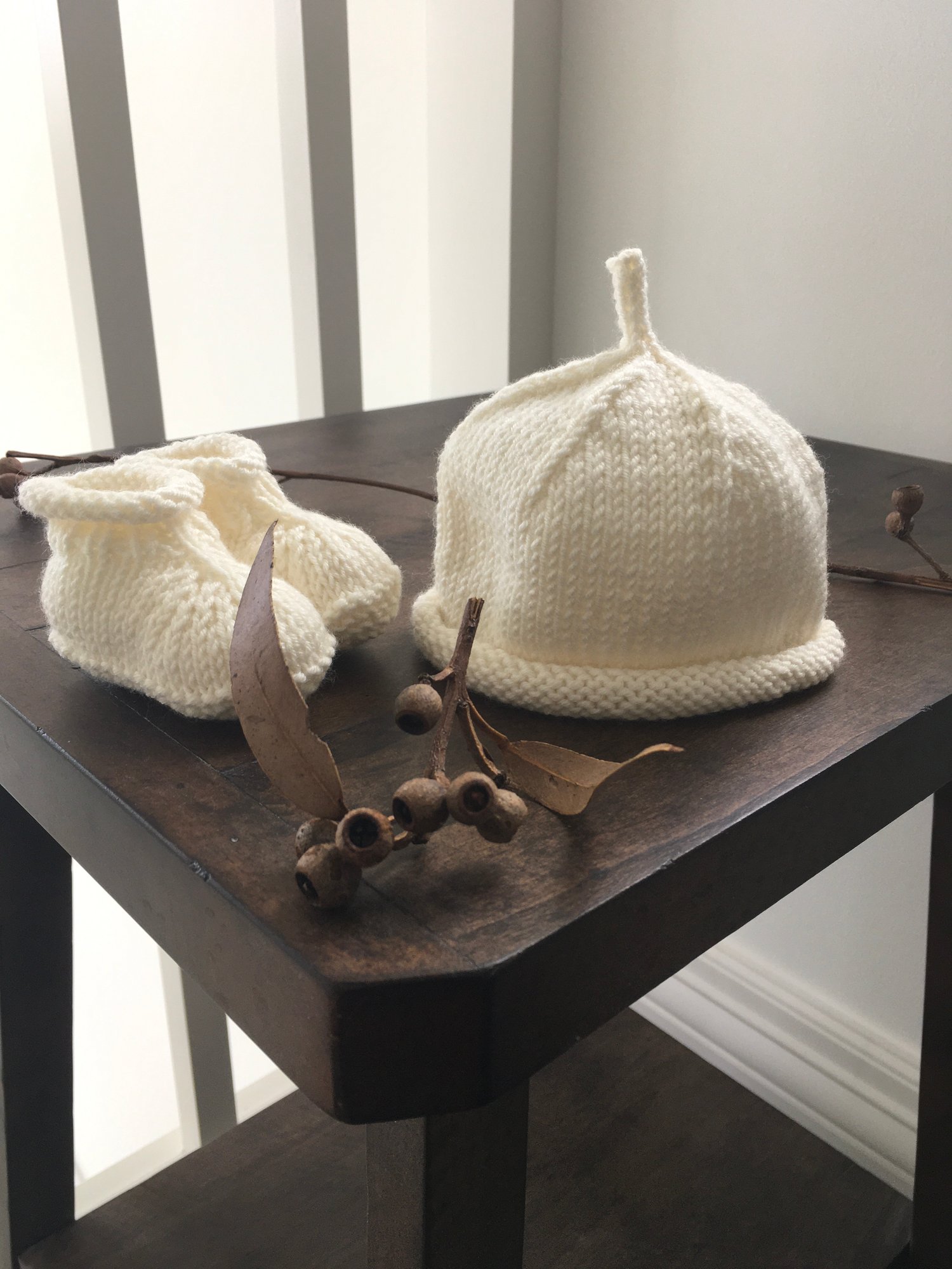 Baby Hat and Booties Set Knitting Pattern: Gumnut