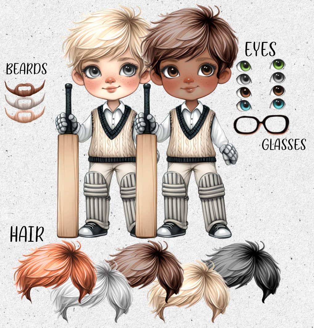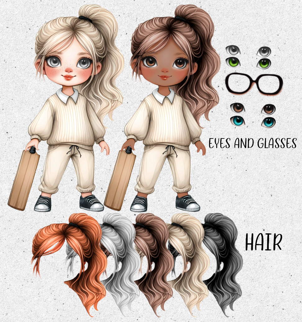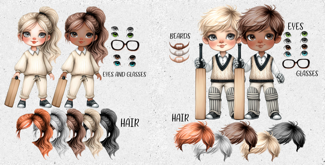 Cricket Chibi dolls. inc darker skin tones, hair, eye, beard, glasses clipart. 27 high quality PNGs. See pics for details.