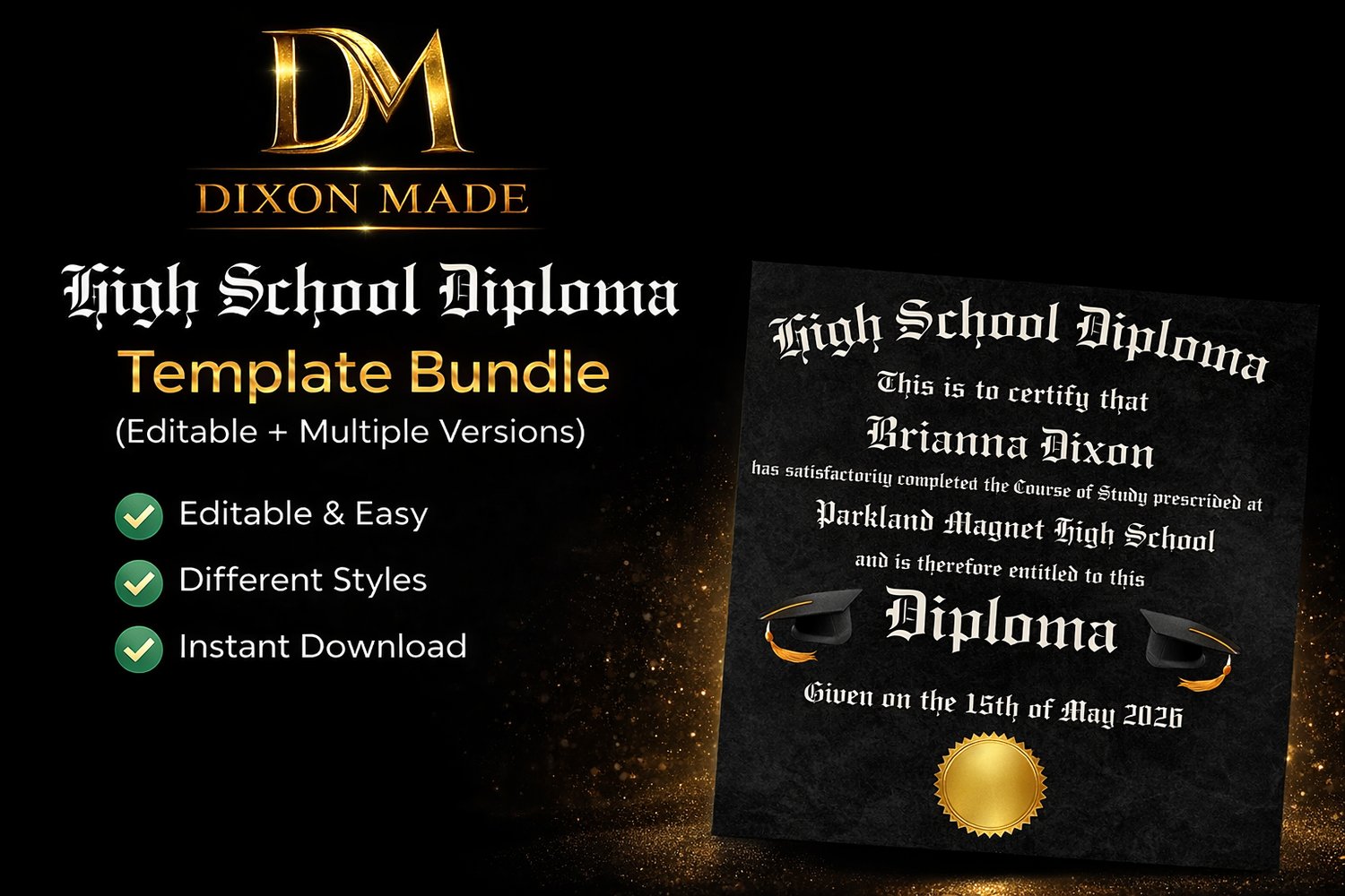 This High School Diploma Template Bundle is perfect for keepsakes, celebrations, homeschool milestones, and custom gifts.