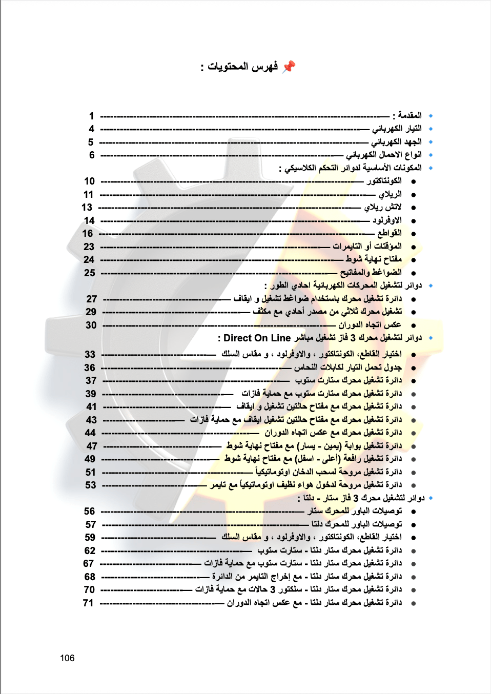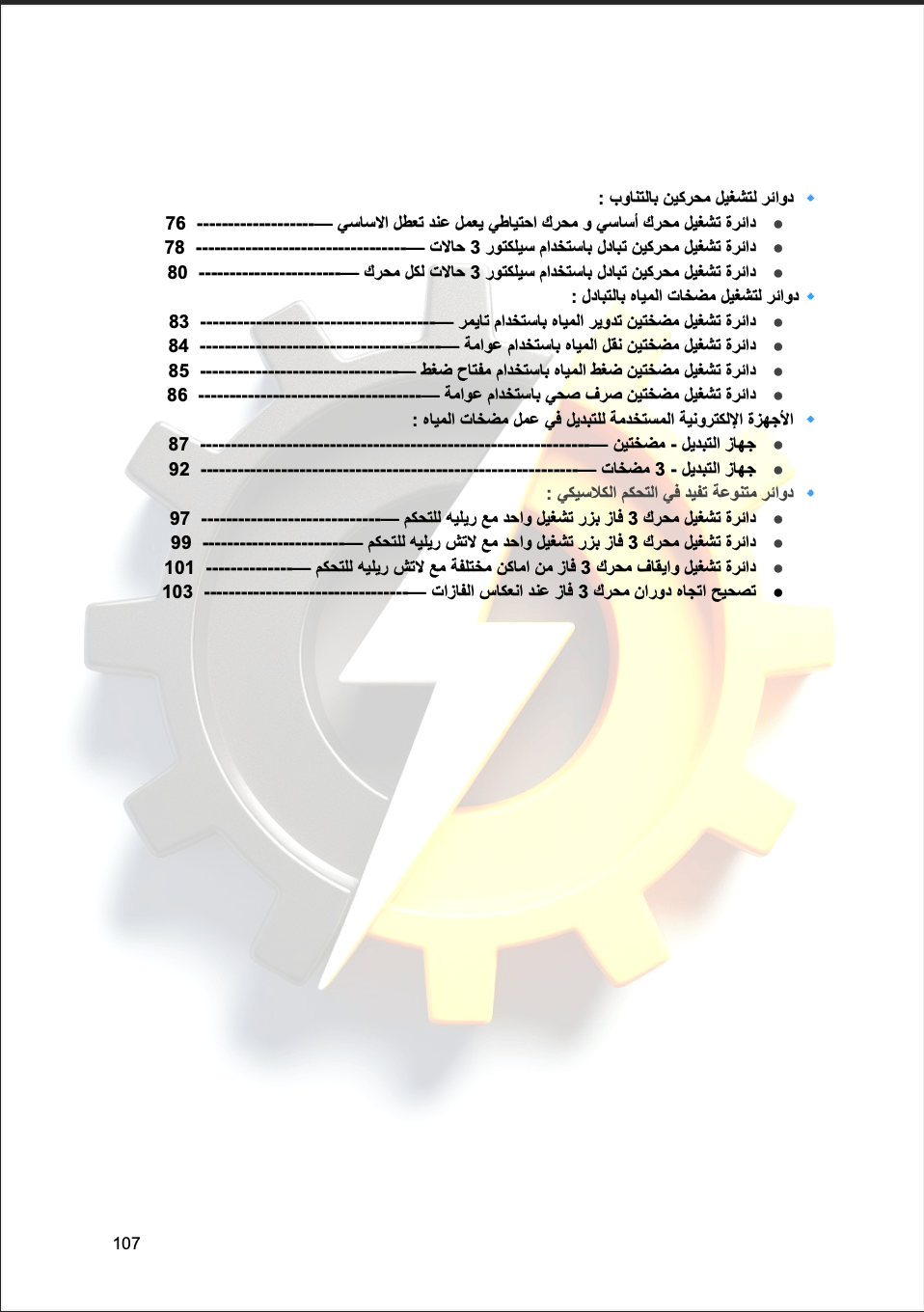 صُمم الكتاب ليرافقك خطوة بخطوة بداية من المفاهيم الأساسية مثل الكونتاكتورات والريليات، وصولاً إلى تشغيل المحركات بأنواعها ودارات التحكم المختلفة مدعومة بالرسومات والمخططات العملية