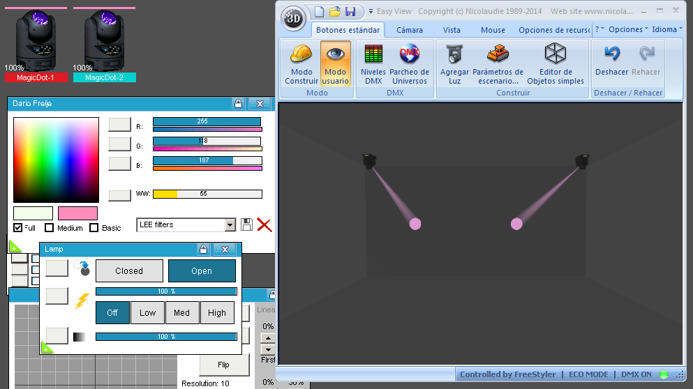 Esta Librería SSL2, para Sunlite Scan Library, está optimizada para trabajar con Magic 3d Easy View. Es decir para ver una representación 3D de las secuencias que estemos realizando con Freestyler o cualquier otro soft que se conecte con Magic 3d.