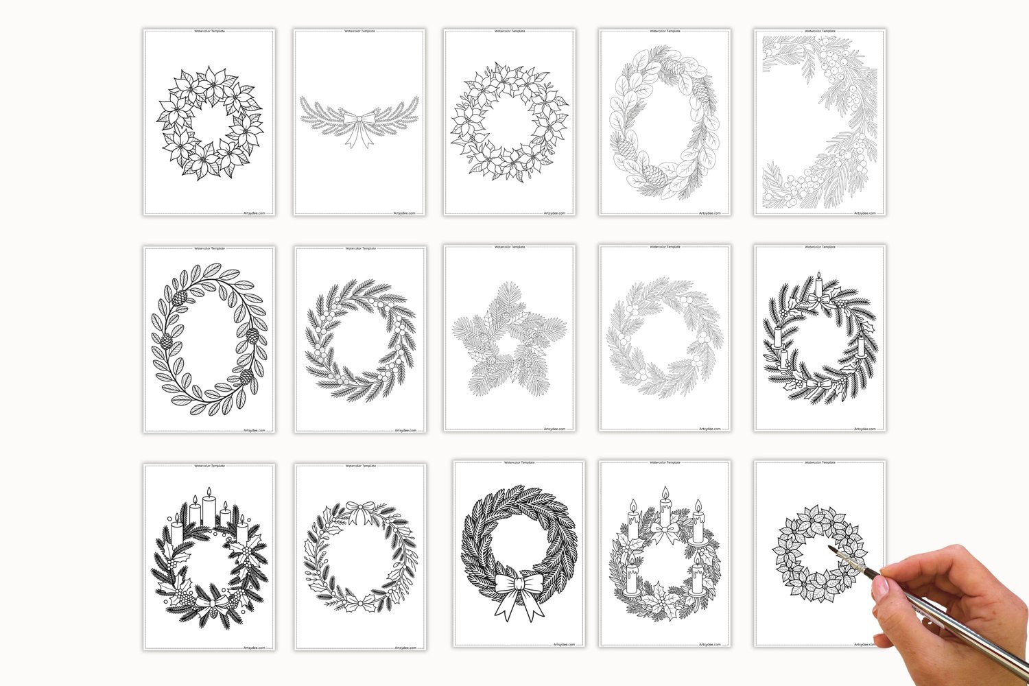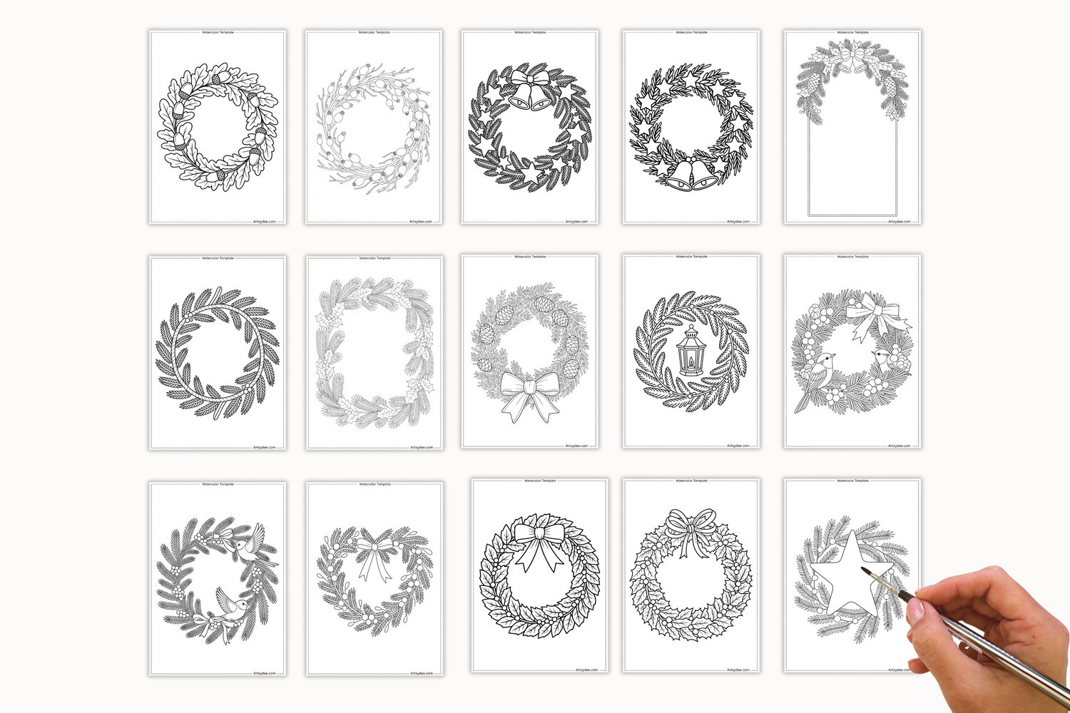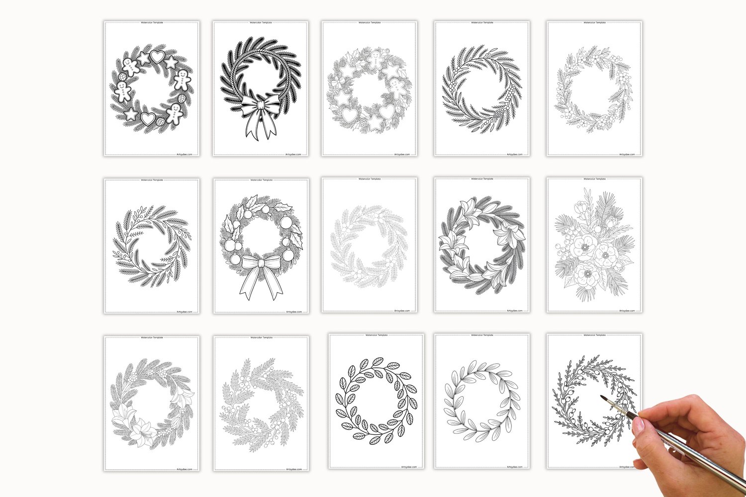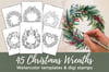 45 Christmas Wreath Watercolor Templates & Digi Stamps – Printable Outlines for Painting, Coloring & Digital Art