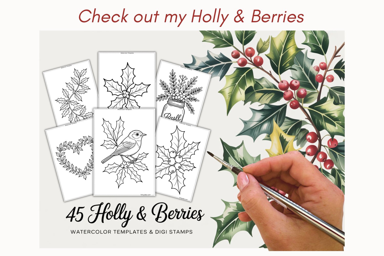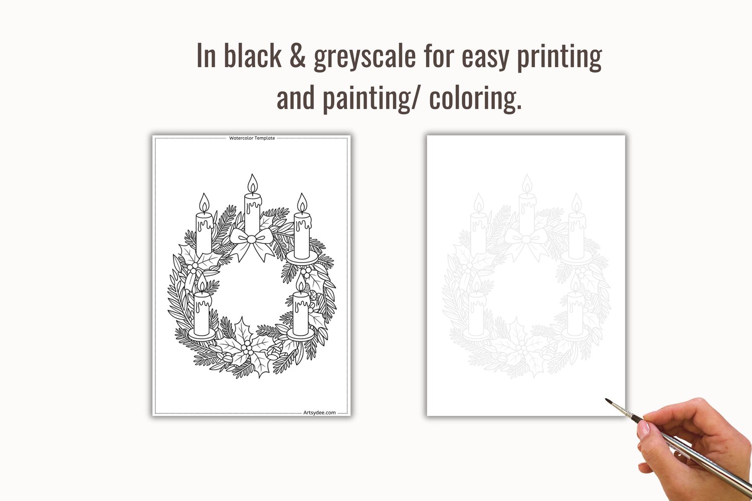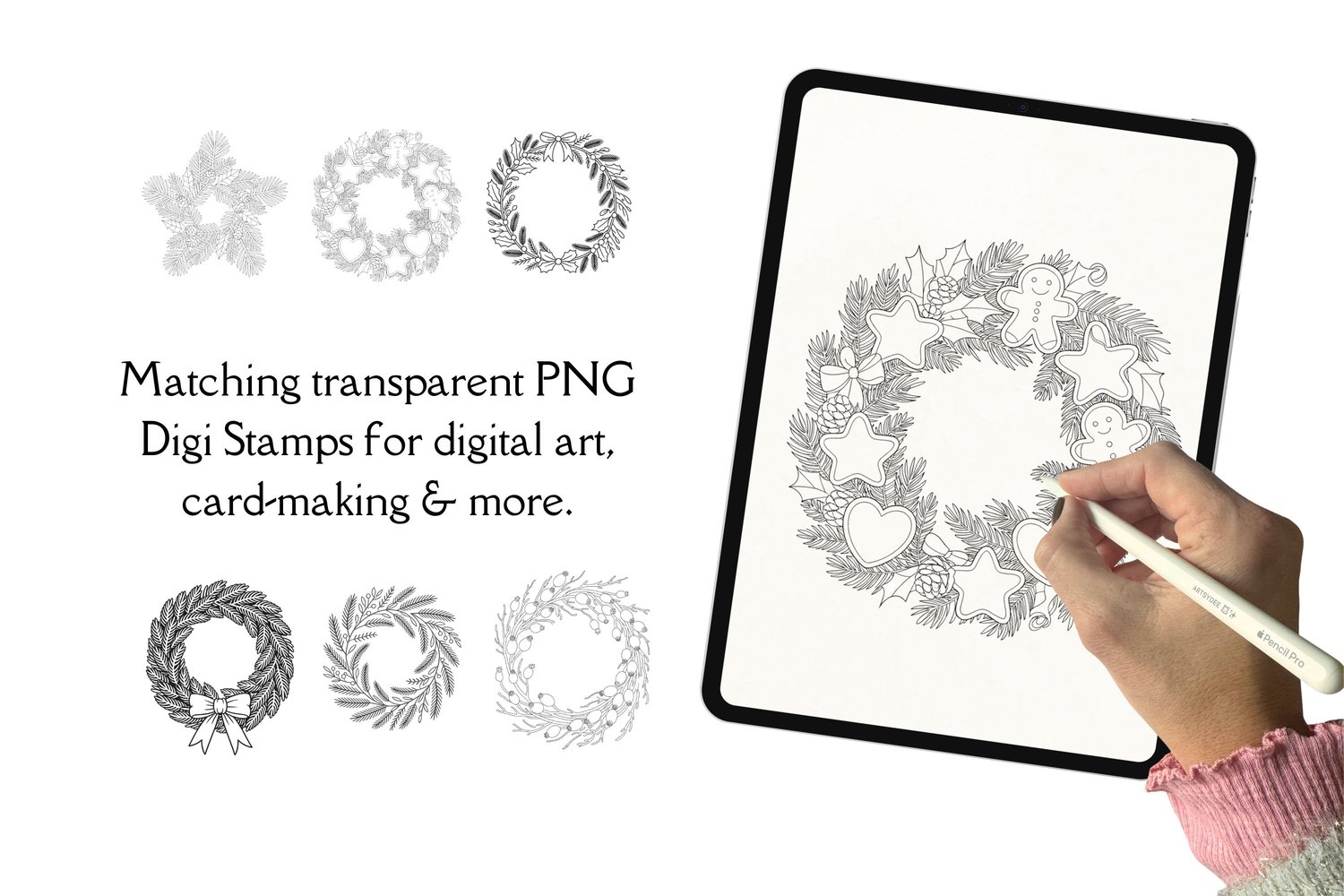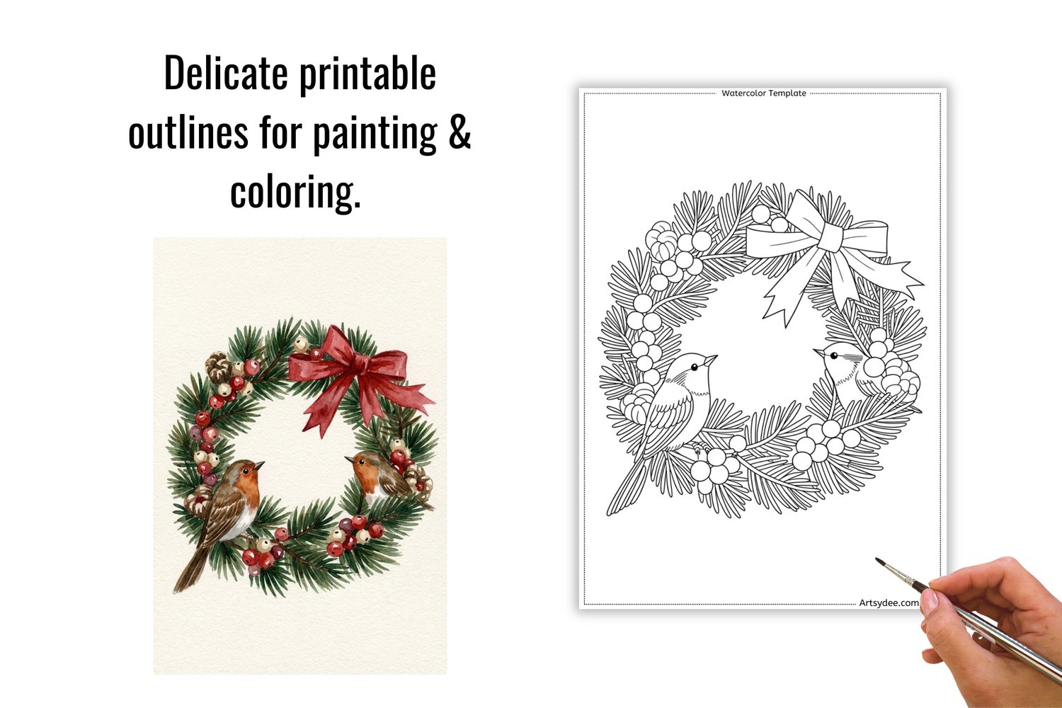 45 Christmas Wreath Watercolor Templates & Digi Stamps – Printable Outlines for Painting, Coloring & Digital Art