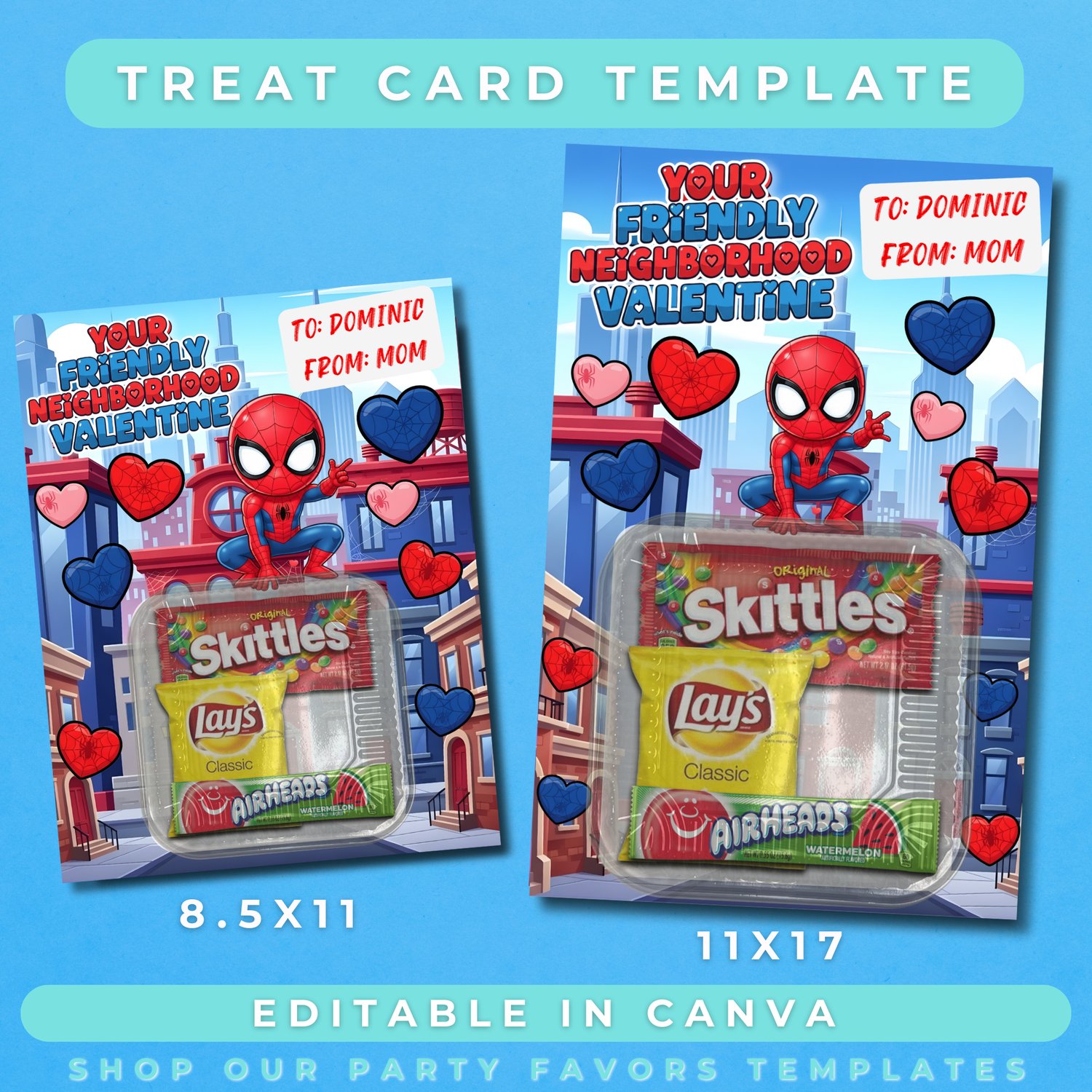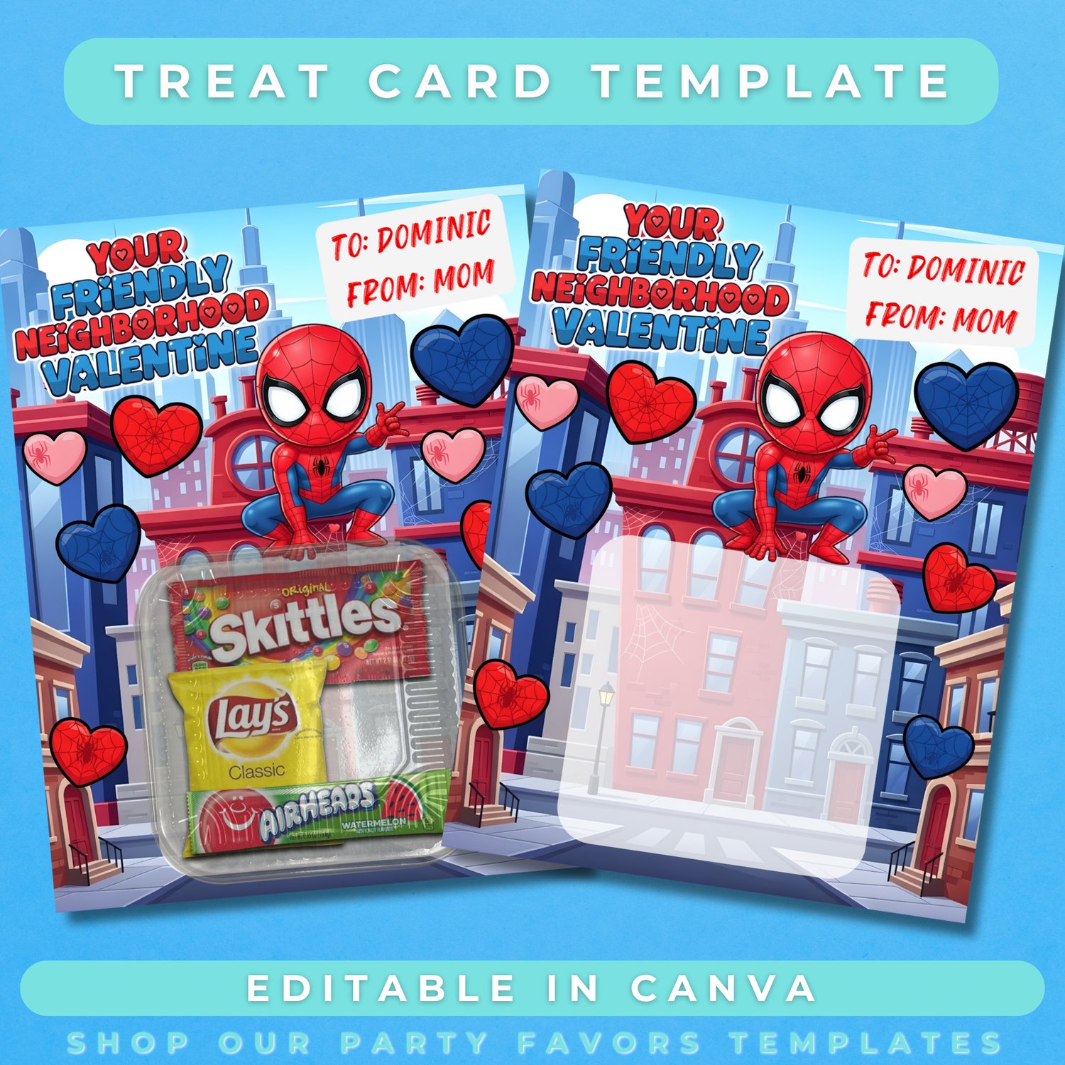 Spiderman Valentine Treat Card Template (Editable in Canva) Digital Download | Superhero Valentine Treat Cards | Party Favors