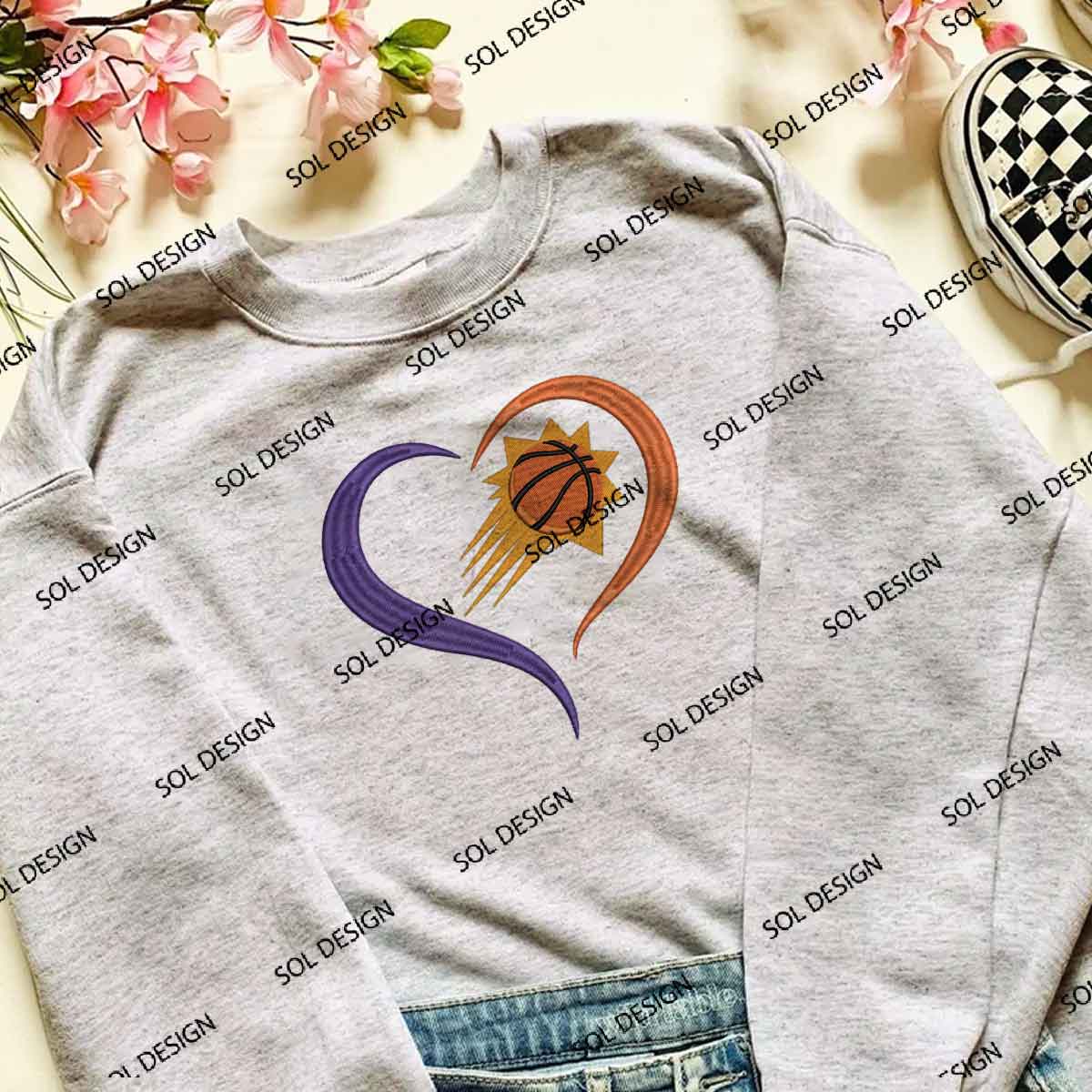 Phoenix Suns Team Heart Logo Embroidery Designs, Phoenix Suns Basketball Team Embroidery Files, NBA Suns Team Logo Embroidery, NBA Basketball Team Machine Embroidery Design, 3 sizes, Digital Download